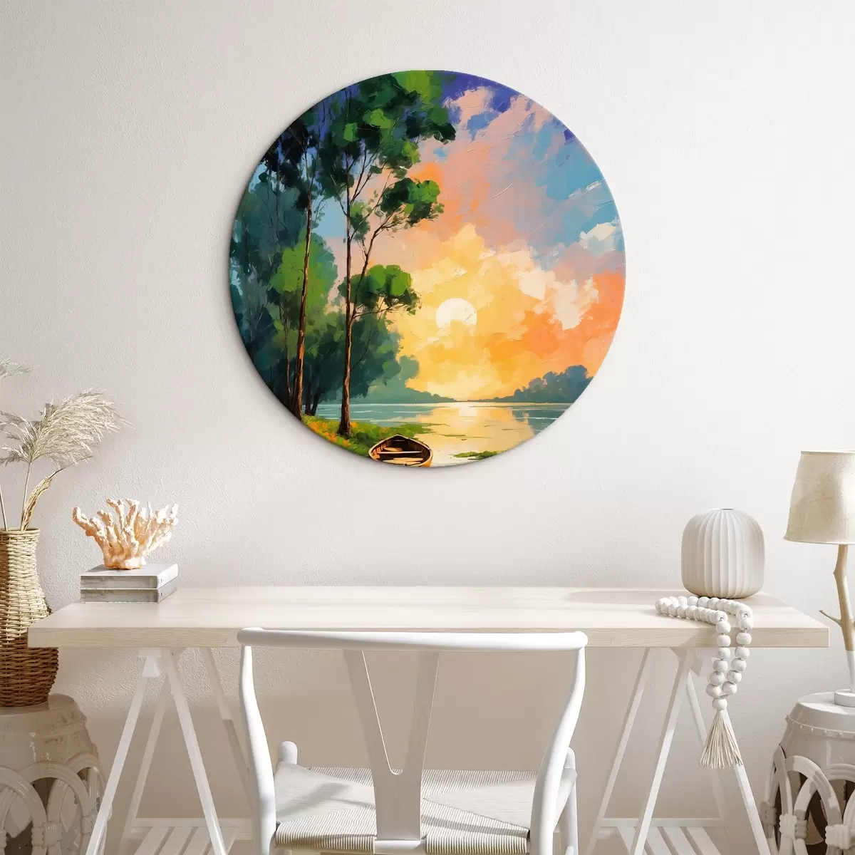Runde Wandbilder Boot in der Nähe einer Insel in Acrylmalerei Stil Nr r44065