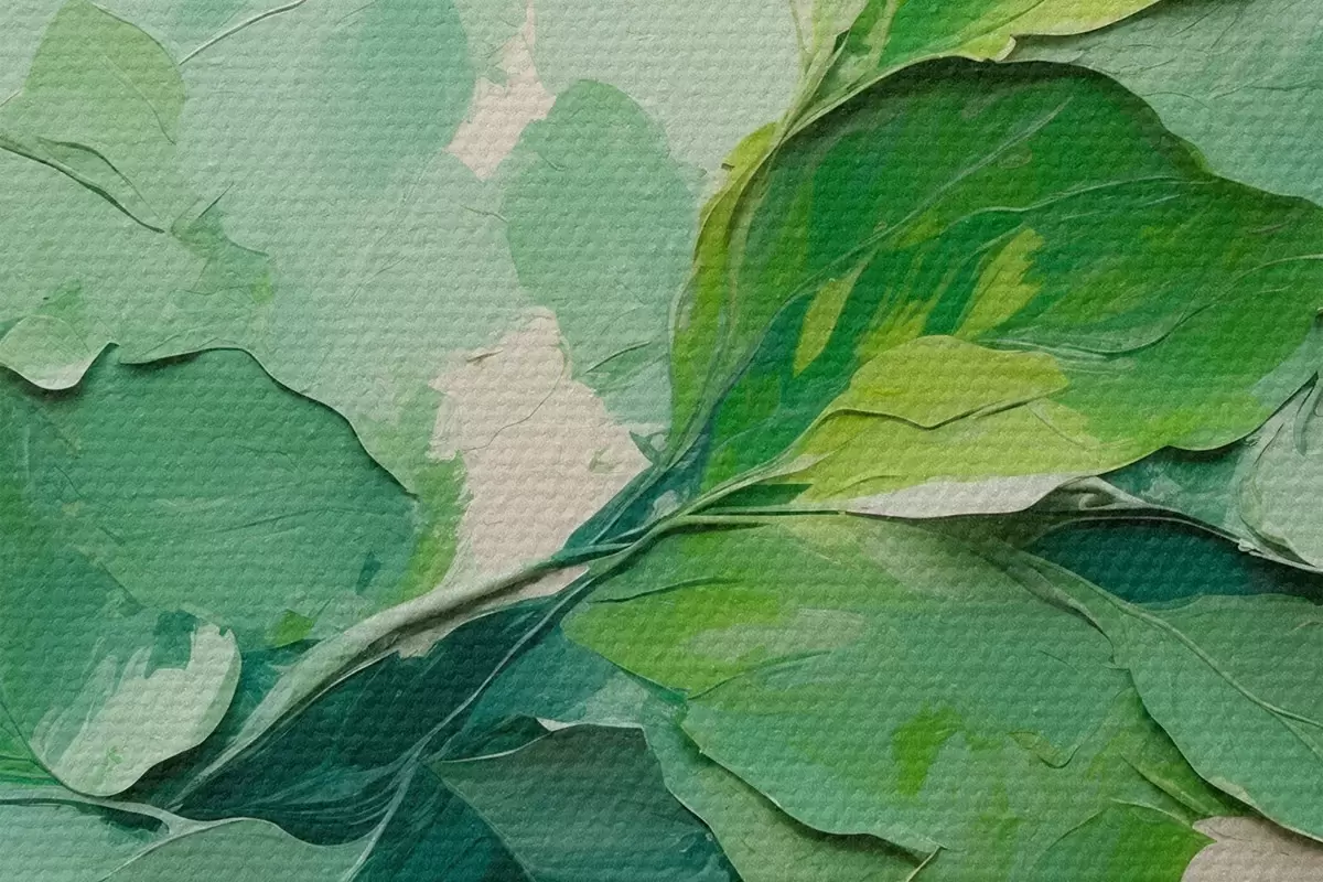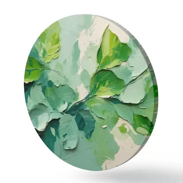 Runde Wandbilder Zweig mit grünen Blättern im Stil der Ölmalerei r44075