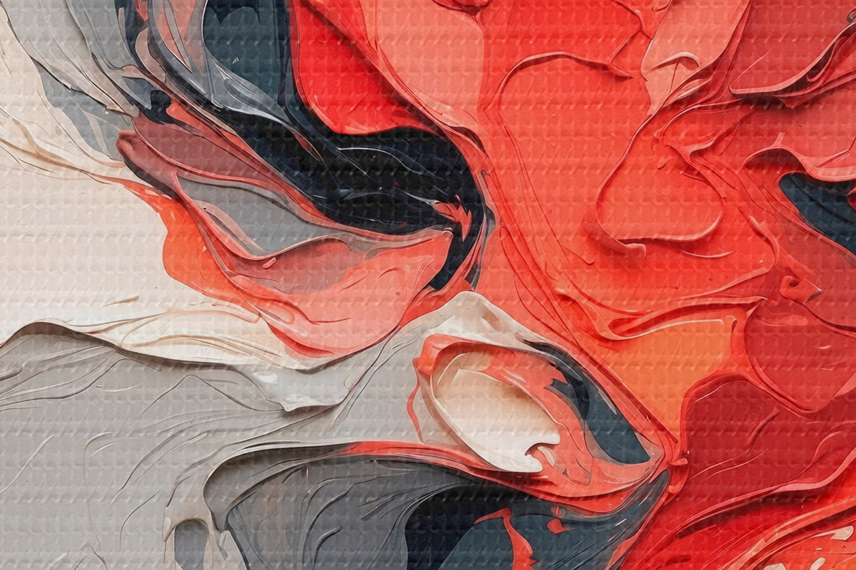 Runde Wandbilder Abstraktes Ölgemälde in roten, schwarzen und grauen Farben r44079