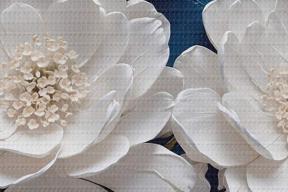 Runde Wandbilder Weiße Blumen auf blauem Ölgemälde Hintergrund Nr r44091