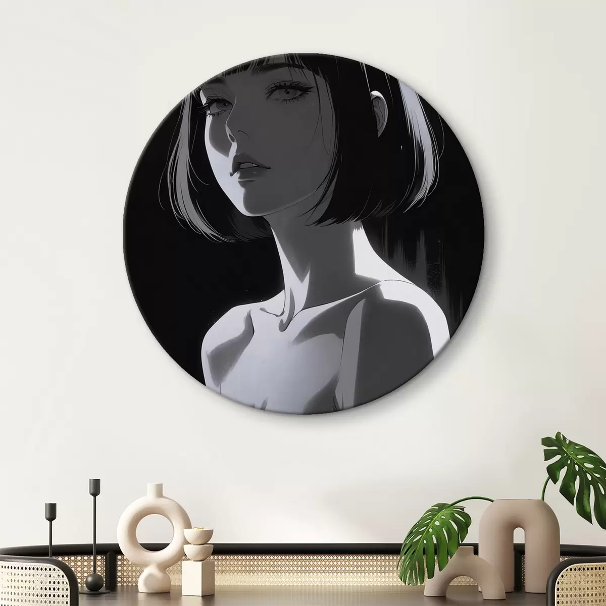 Runde Wandbilder Poster mit Mädchen auf schwarzem Hintergrund Nr r44103