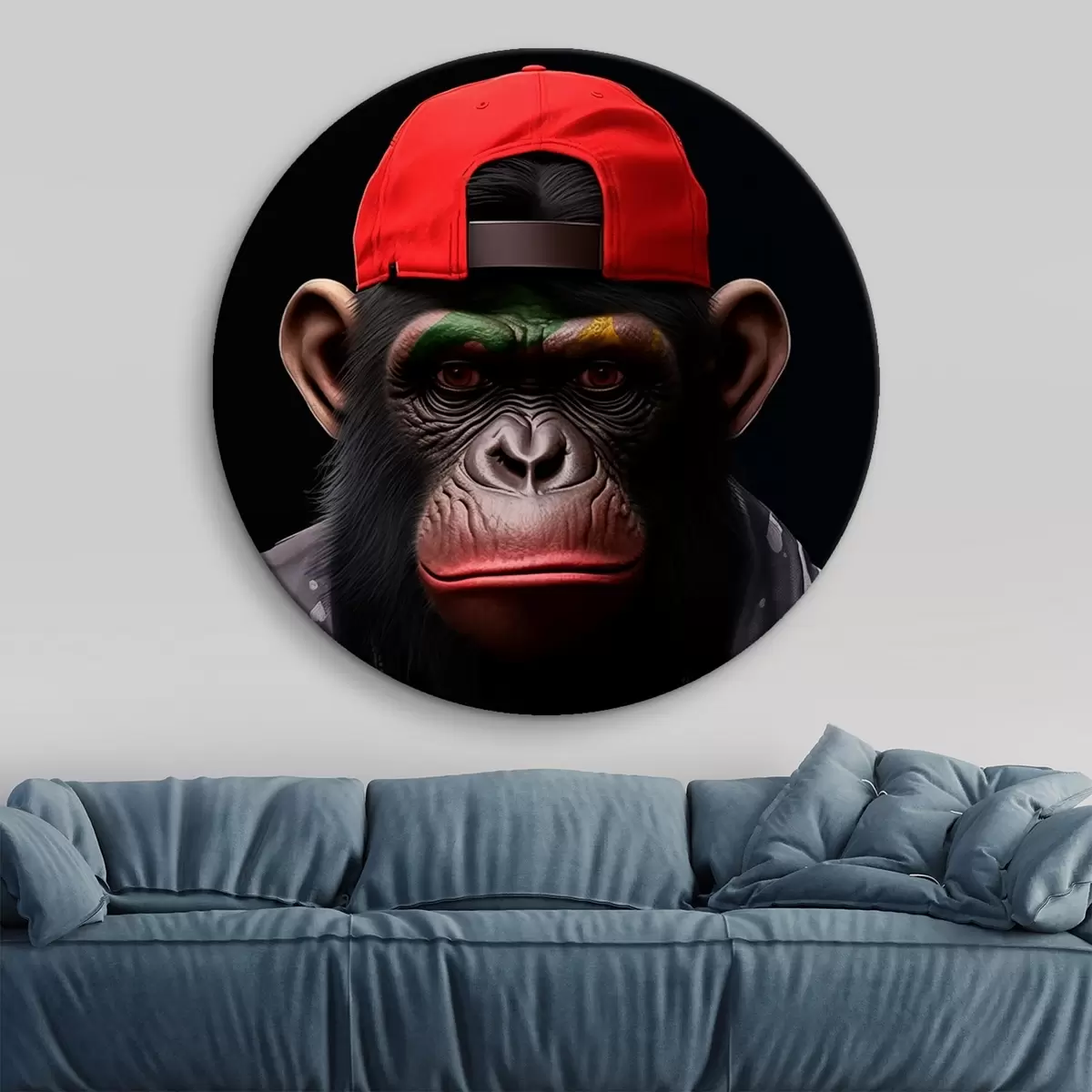 Runde Wandbilder Affe mit Mütze r44110