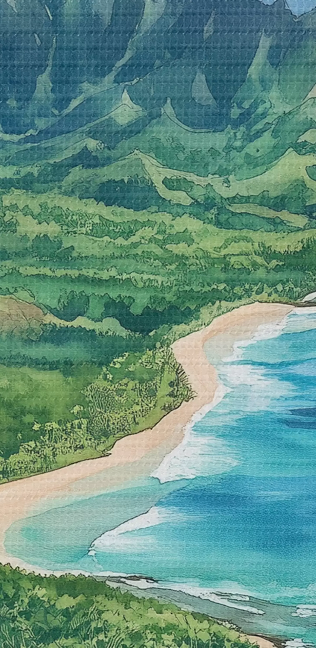 Runde Wandbilder Grüne Berge, Hawaii, Ozean, tropisch, Aquarellstil Nr r44143