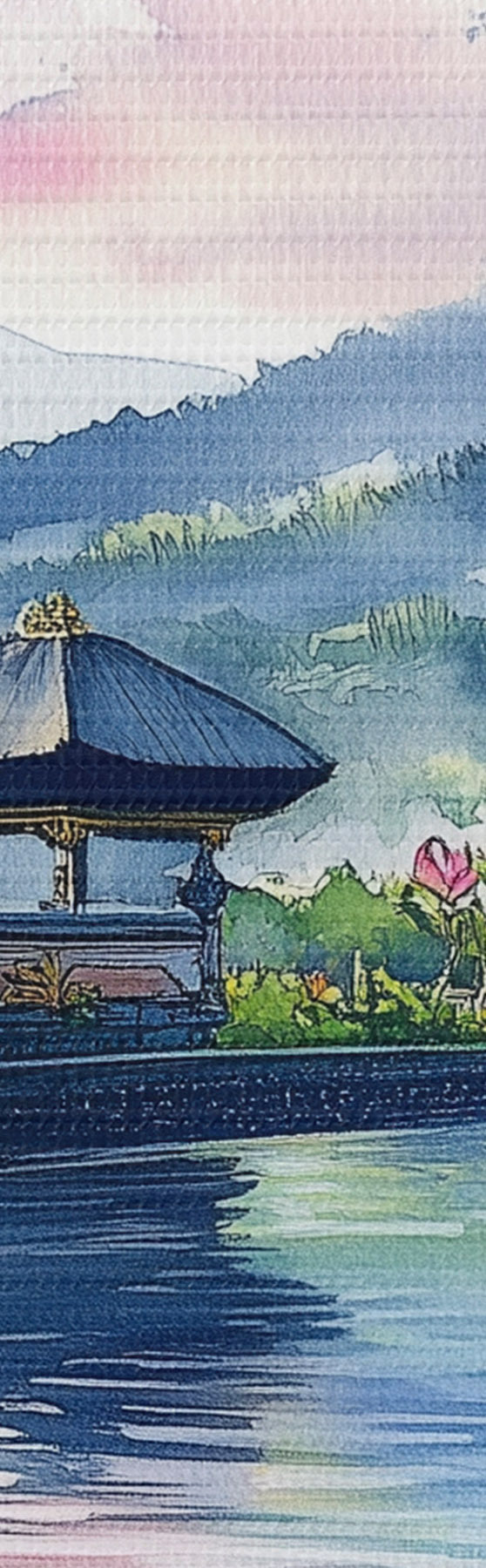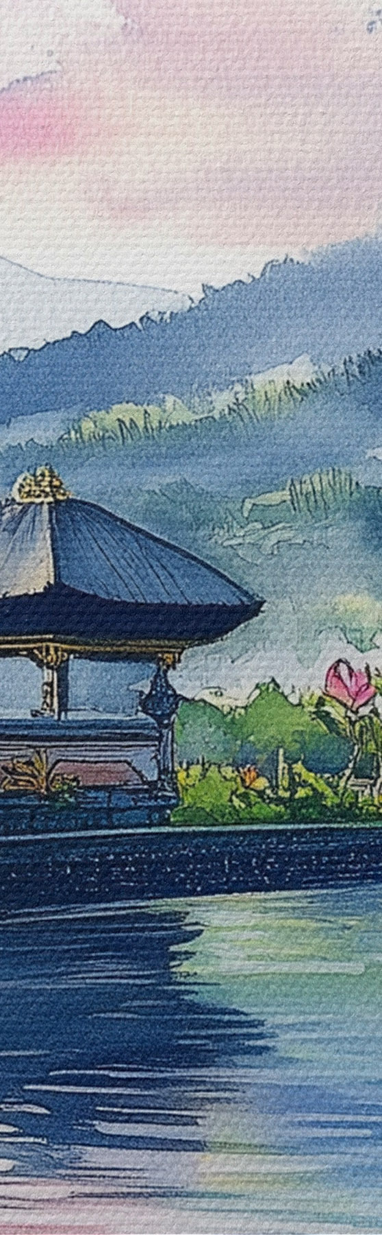 Runde Wandbilder Indonesische Insel, Tempel, Buddhismus, tropische Natur, Aquarellstil Nr r44148