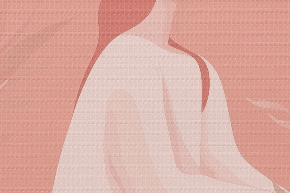 Runde Wandbilder Frau in Meditation, flacher Stil, tropische Pflanzen, rosa Farben r44154