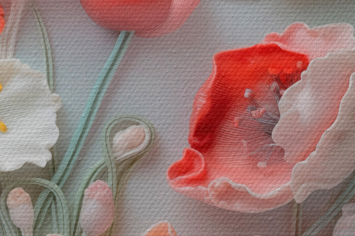 Drei Materialtypen stehen zur Verfügung: Economic Canvas - ein dichtes und haltbares Material für den Digitaldruck, identisch mit Malerleinwand, wasserfeste Oberfläche, realistische Wiedergabe von Details, mittelkörniges Material. Premium Canvas - die Textur ähnelt der einer Malerleinwand (verwobene kleine Fäden). Weiche, detaillierte Wiedergabe des Bildes auf einer matten Oberfläche. Eco-Premium - hochwertiges Gewebe aus 100% Baumwolle. Dank der natürlichen Baumwollfasern ist das Material langlebig und verschleißfest. Hervorragende Farbwiedergabe und Detailtreue.