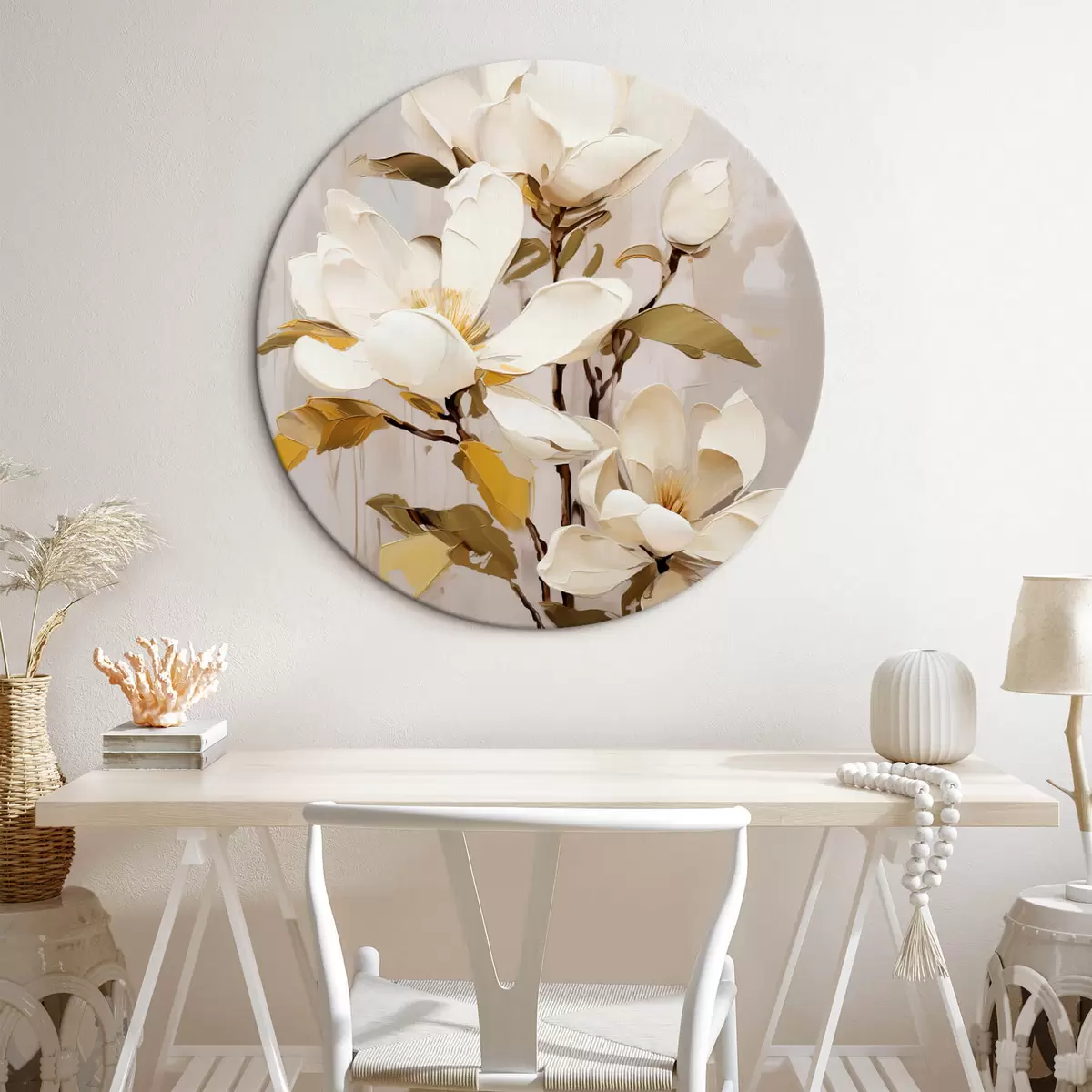 Runde Wandbilder Ein abstrakter Zweig mit Magnolie Nr r44300