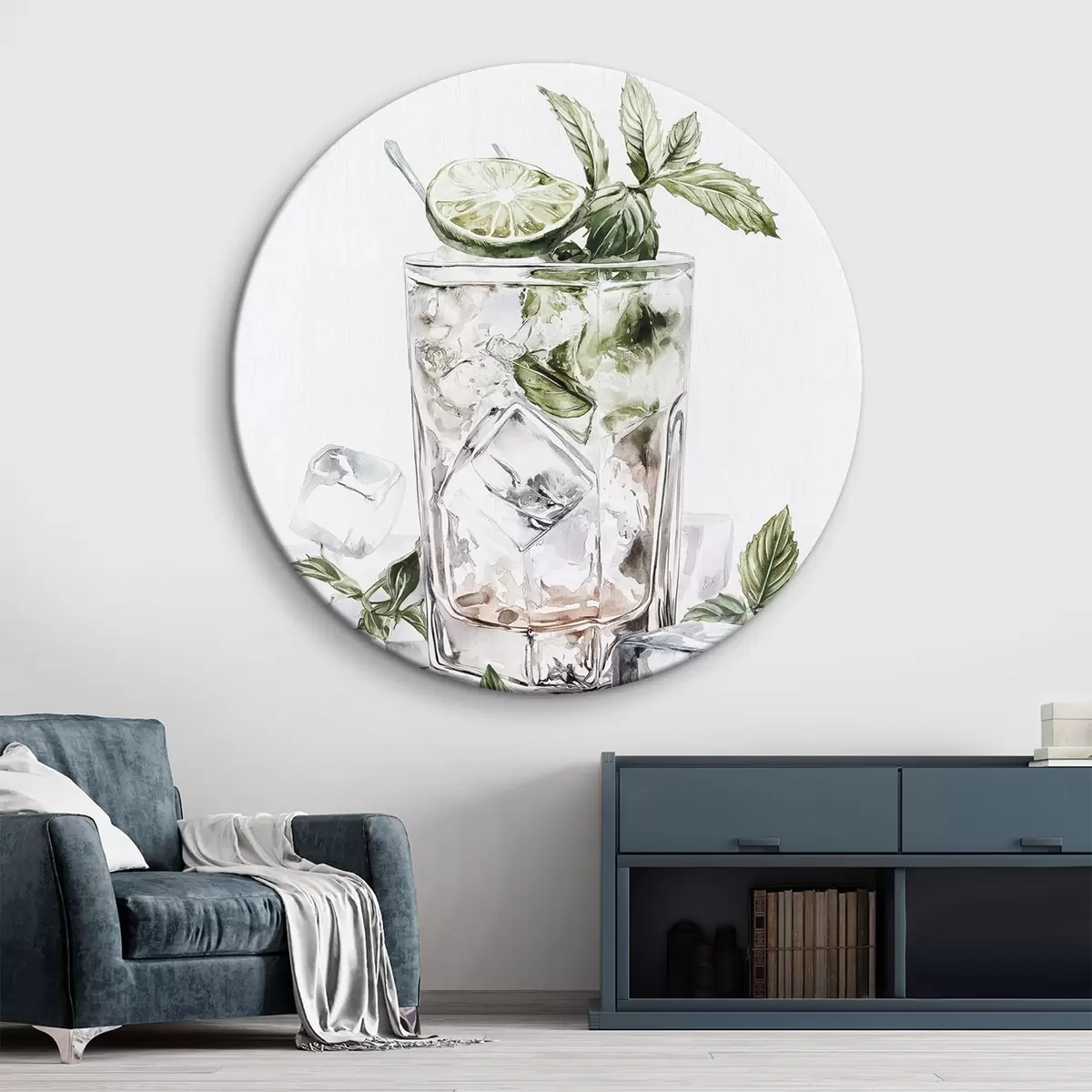 Runde Wandbilder Mojito-Cocktail, Getränke im Aquarellstil, Minze Nr r44302