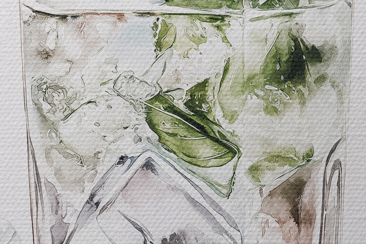 Runde Wandbilder Mojito-Cocktail, Getränke im Aquarellstil, Minze r44302