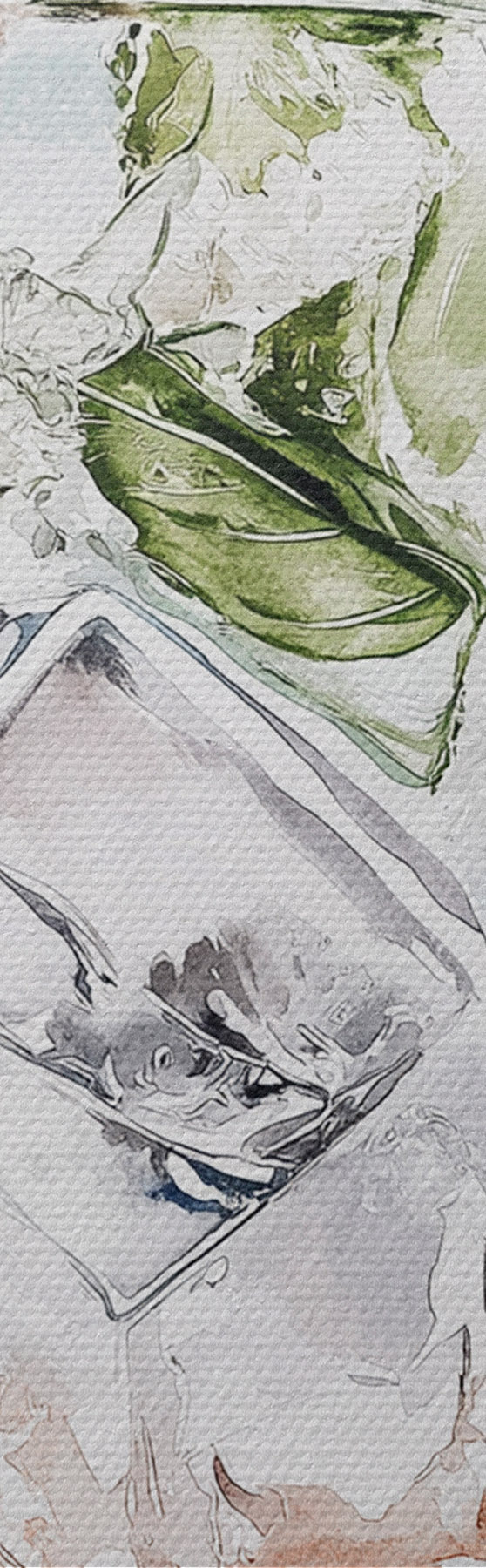 Um die Leinwand auf Keilrahmen zu spannen, ohne das Bild zu beschädigen, verwenden wir ein gespiegeltes Bild.