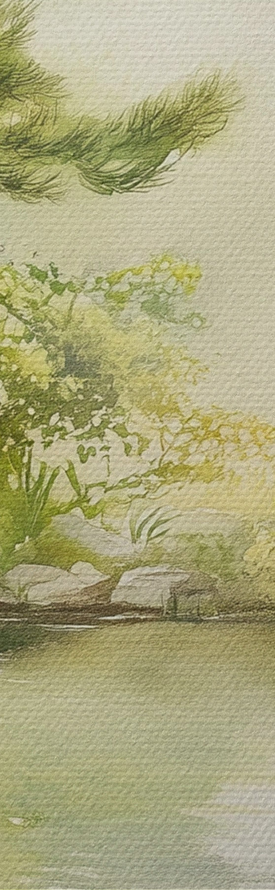 Runde Wandbilder Orientalischer Garten mit See und Bäumen, Natur, Aquarellstil r44313