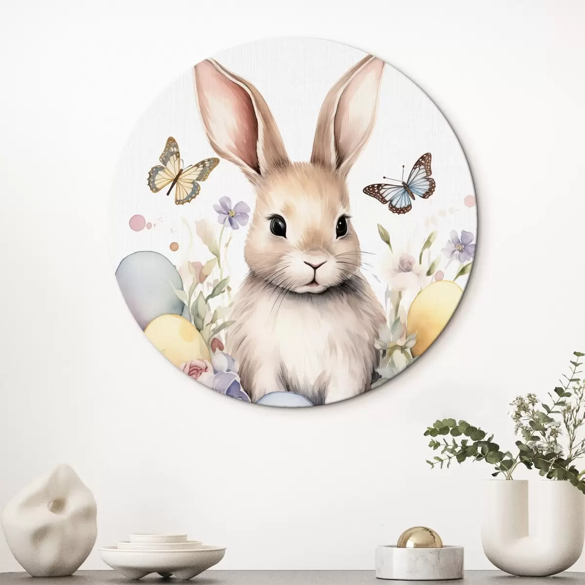 Runde Wandbilder Niedliches Häschen im Aquarellstil in Blumen mit Schmetterlingen Nr r44388