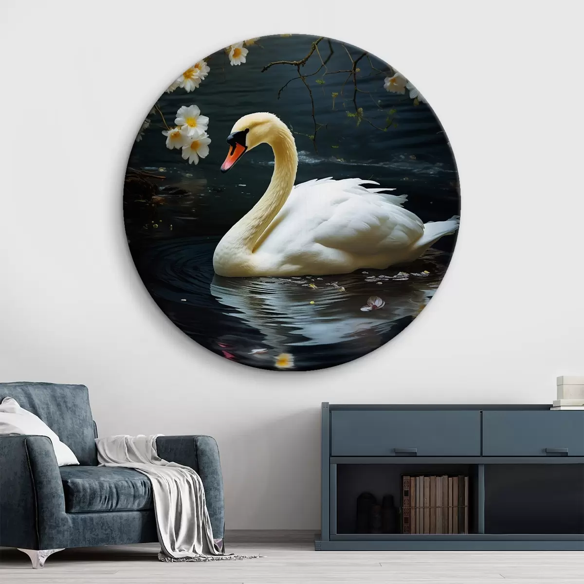 Runde Wandbilder Schöner Schwan auf dem See Nr r44390