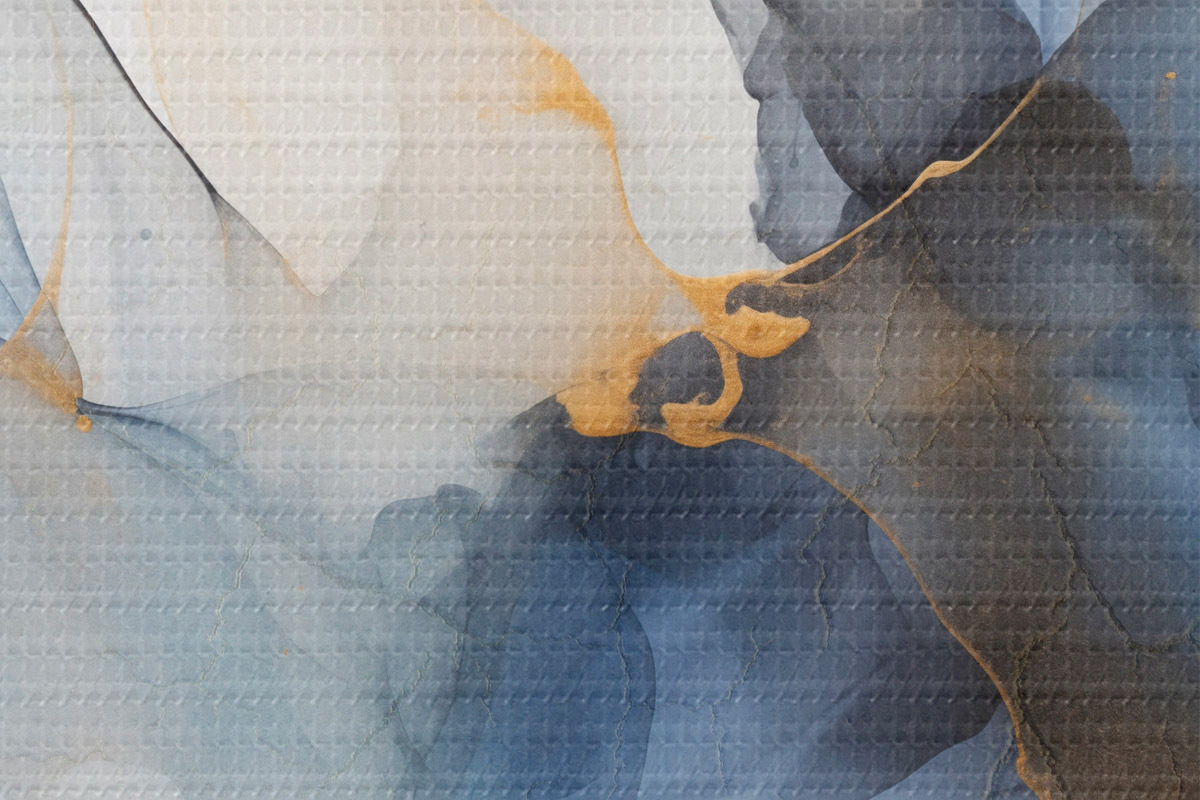 Runde Wandbilder Abstrakte Malerei mit blauer Tinte, fließende und organische Formen, zarte Texturen auf weißem Hintergrund Nr r44397