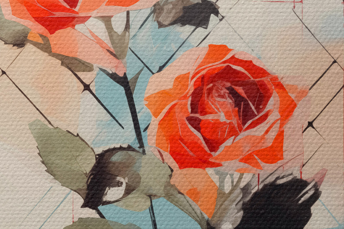 Runde Wandbilder Rosen auf einem Hintergrund aus Linien und Flecken r44421