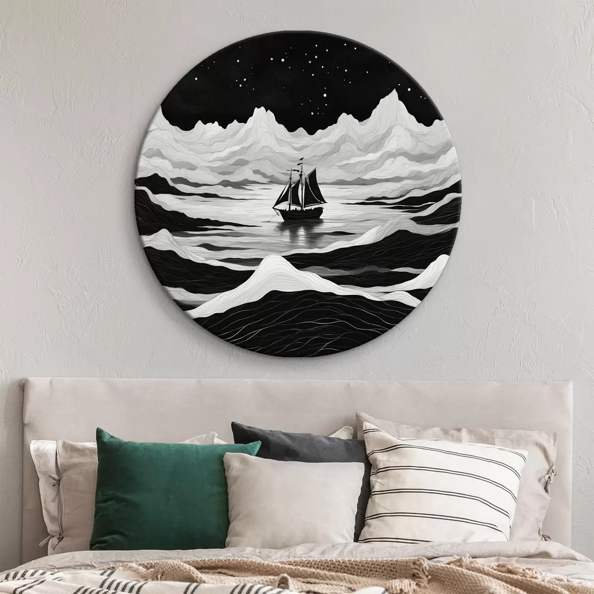 Runde Wandbilder Schiff im nebligen Nachtmeer r44437