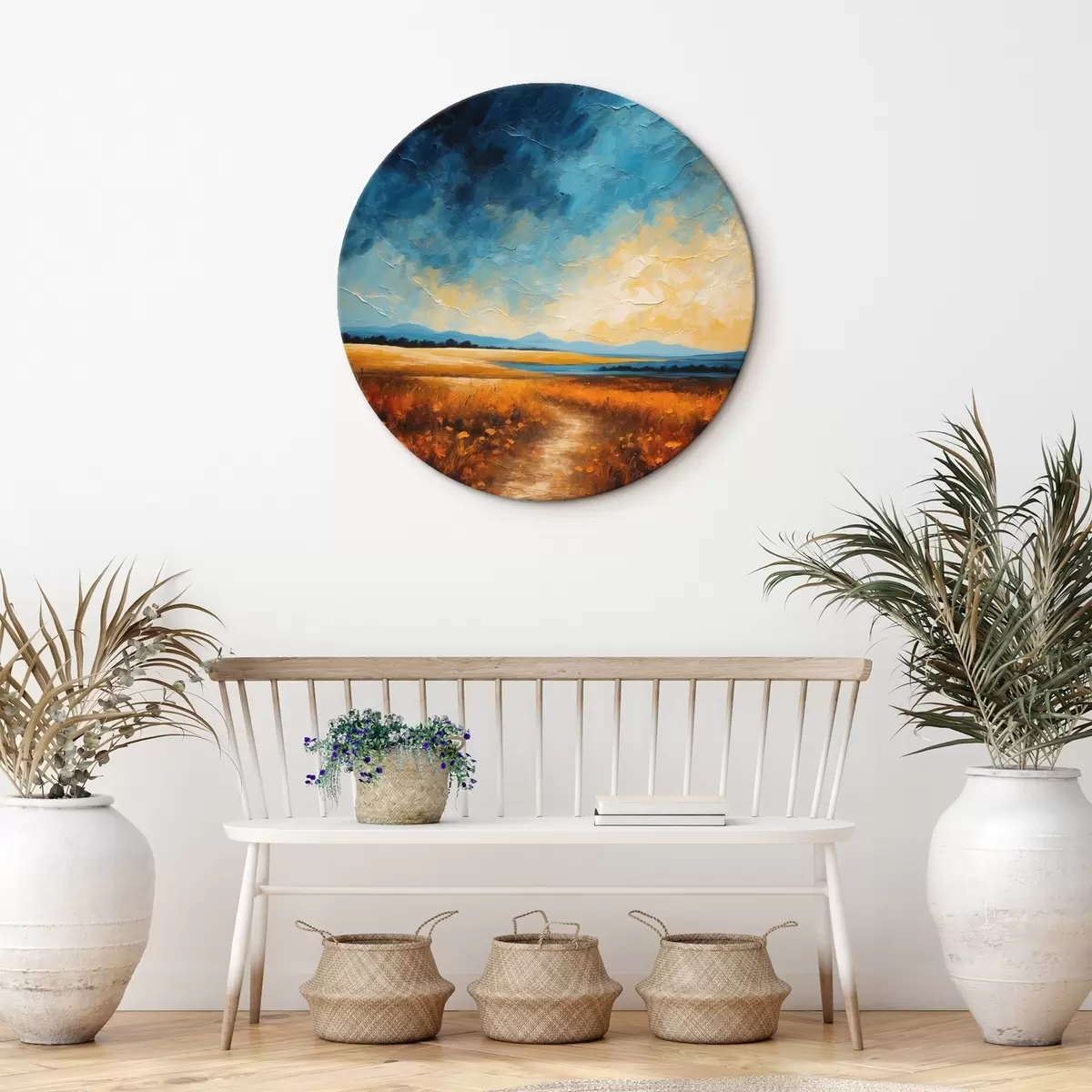 Runde Wandbilder Blumenfeld am Abend im Stil der Acrylmalerei r44440