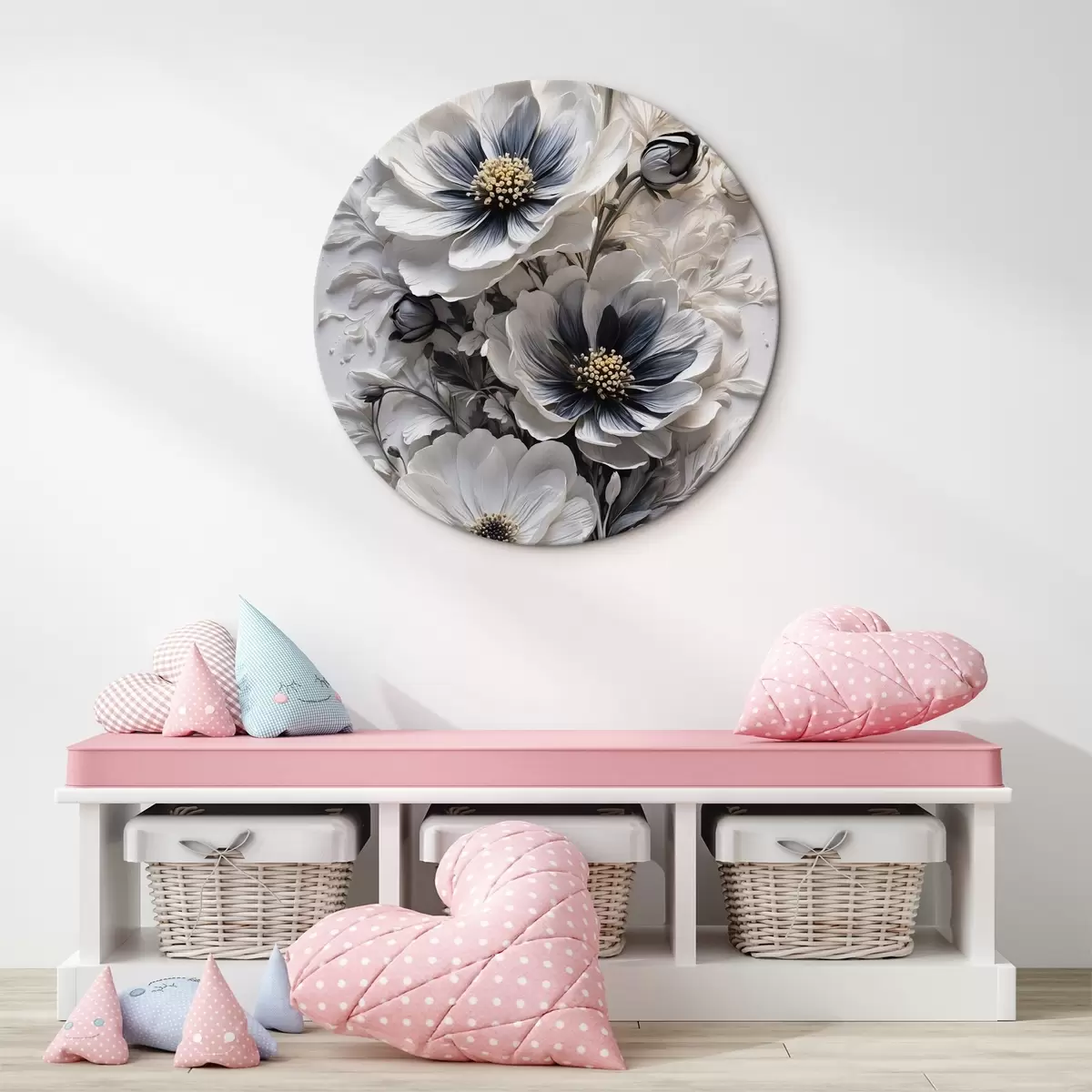 Runde Wandbilder Schwarze und weiße Blumen auf weißem Hintergrund r44446