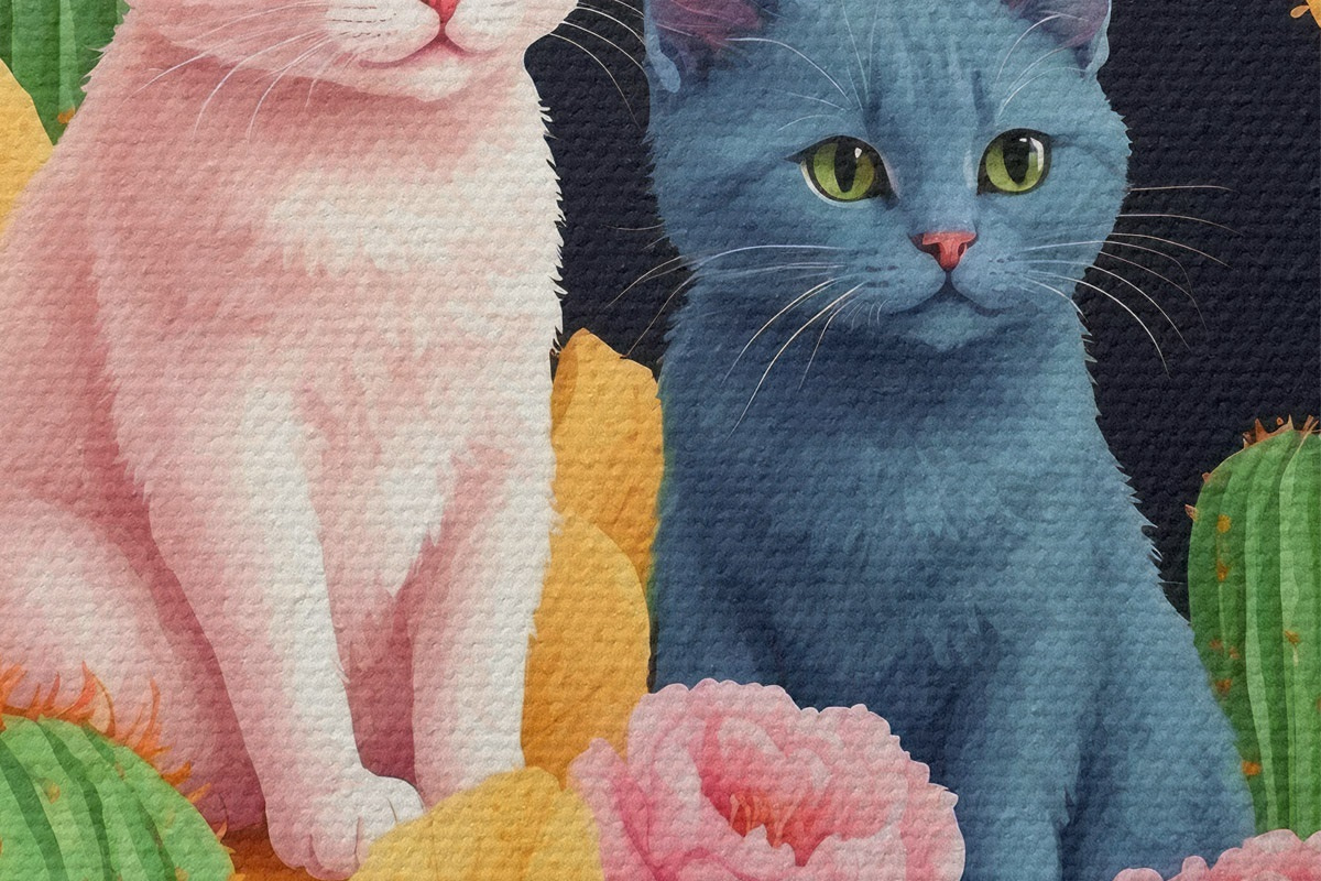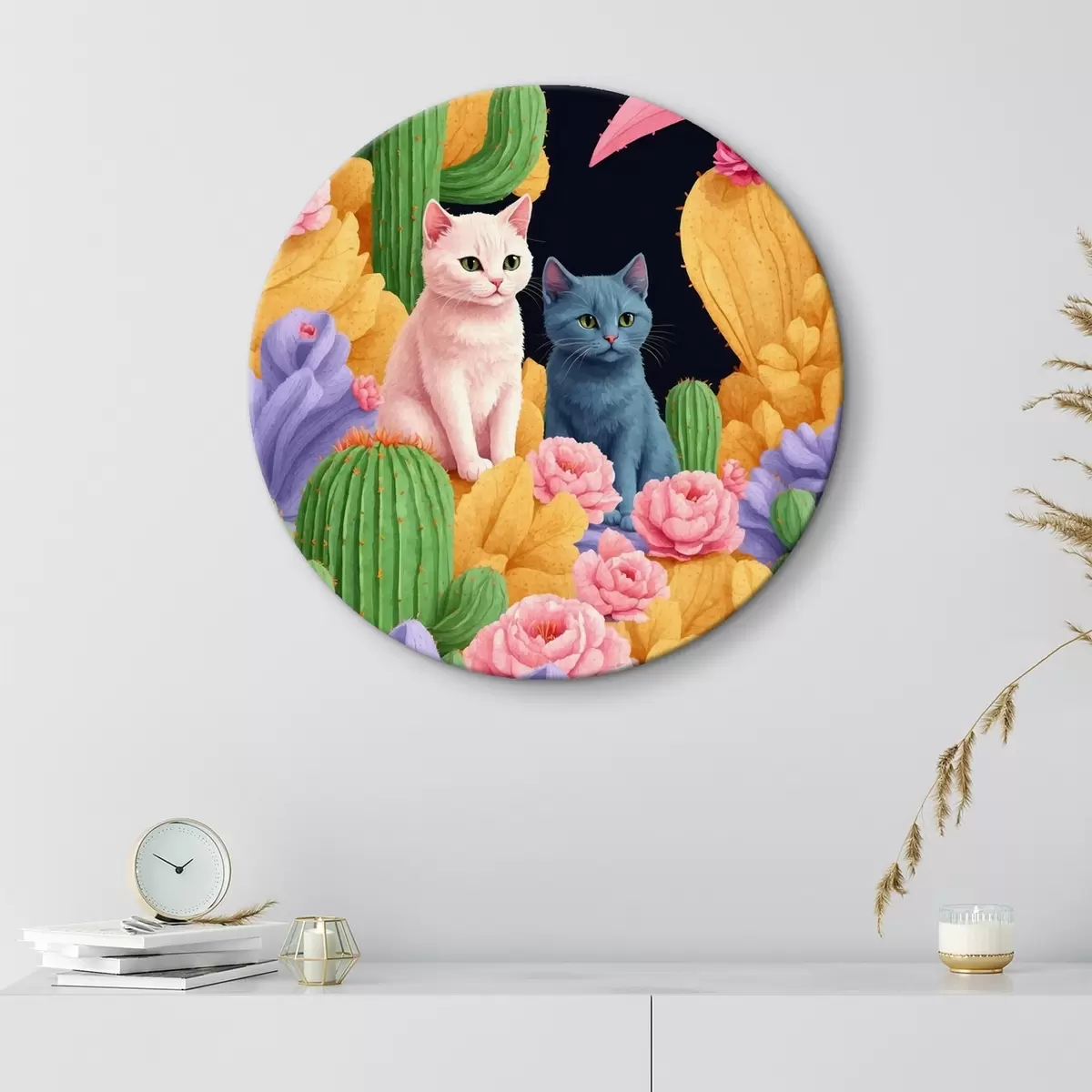 Runde Wandbilder Künstliche Katzen zwischen Blumen und Kakteen Nr r44452