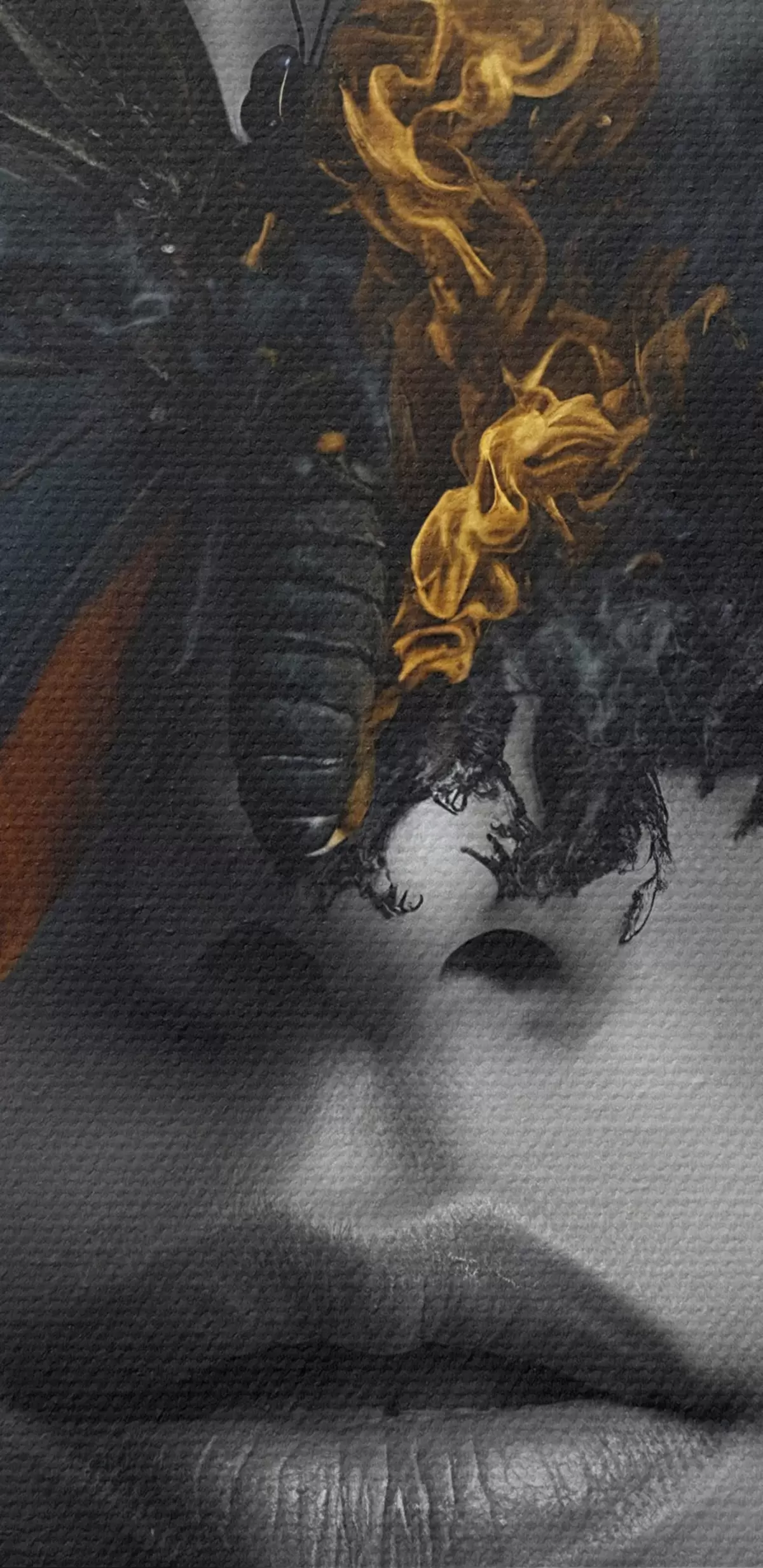 Runde Wandbilder Brennender Schmetterling auf dem Gesicht eines Mädchens Nr r44468