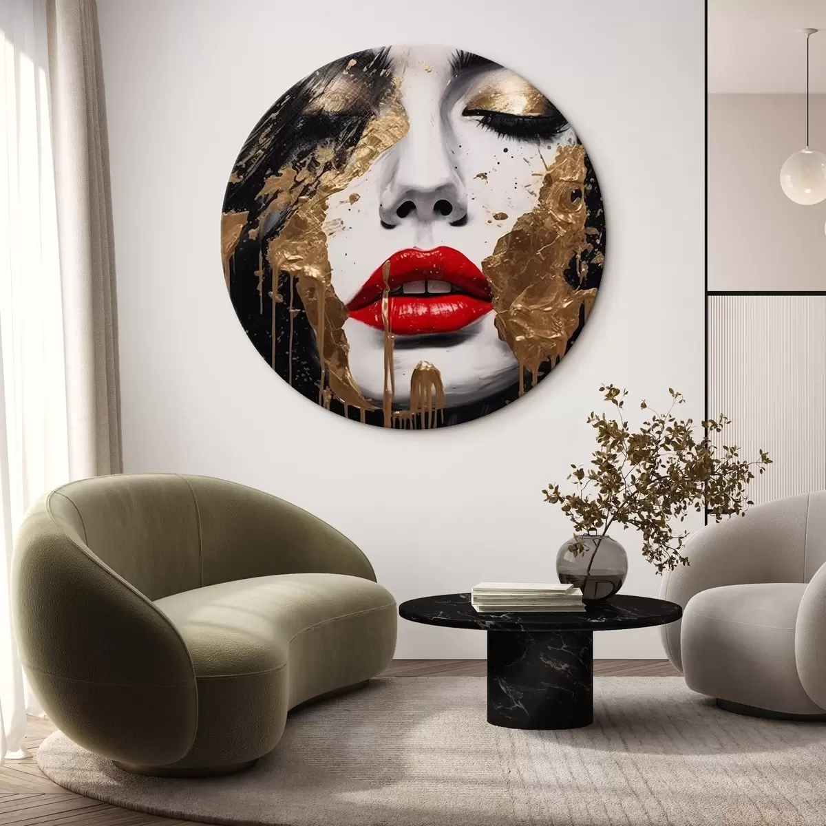 Runde Wandbilder Gesicht mit roten Lippen r44492
