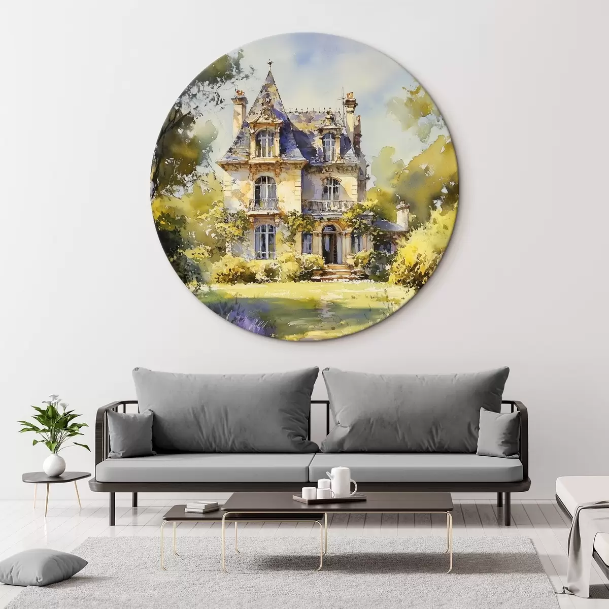 Runde Wandbilder Französisches Landhaus, Aquarellstil, Lavendelfelder r44501