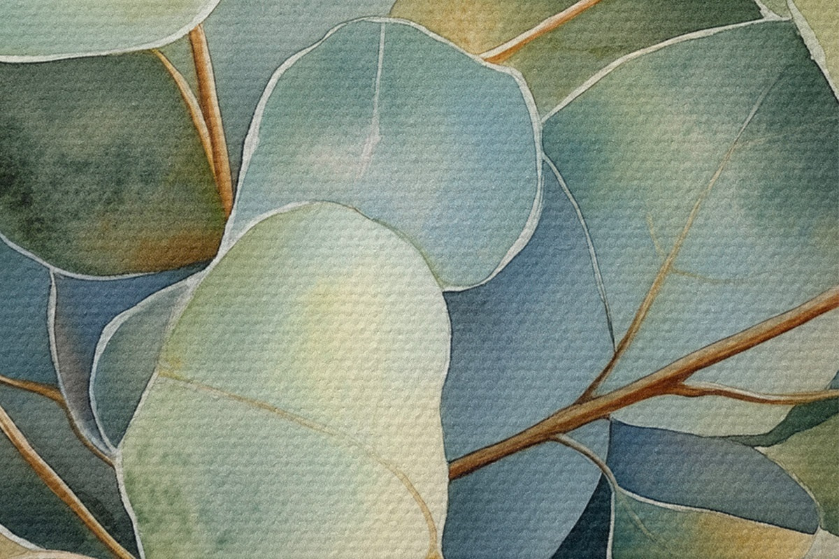 Runde Wandbilder Eukalyptusblätter, Aquarellstil, Natur r44502
