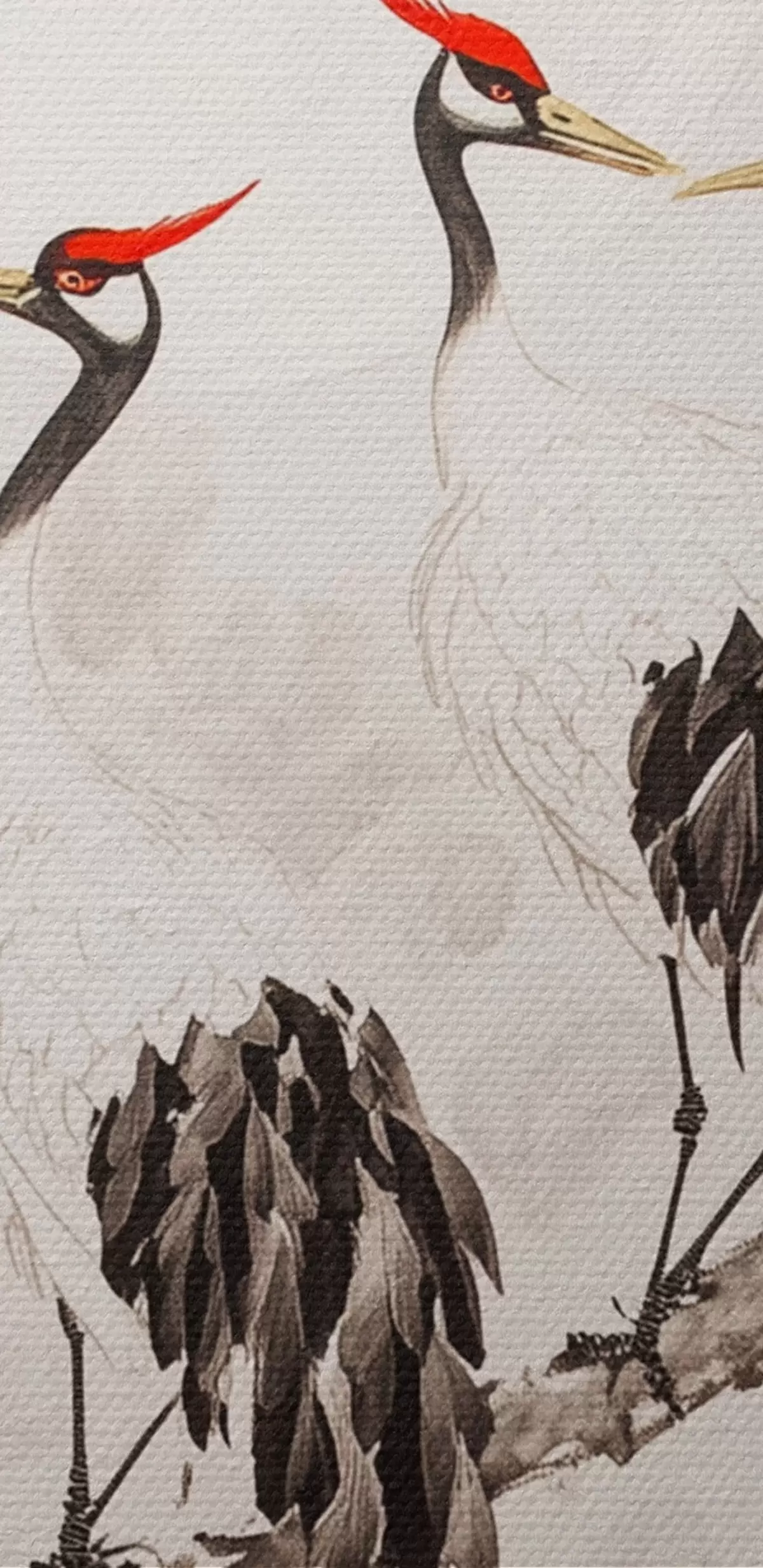 Runde Wandbilder Chinesische Kunst mit Kranichen und Kiefern, orientalischer Stil, Natur r44503