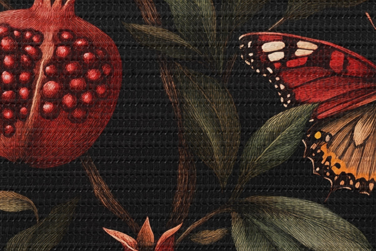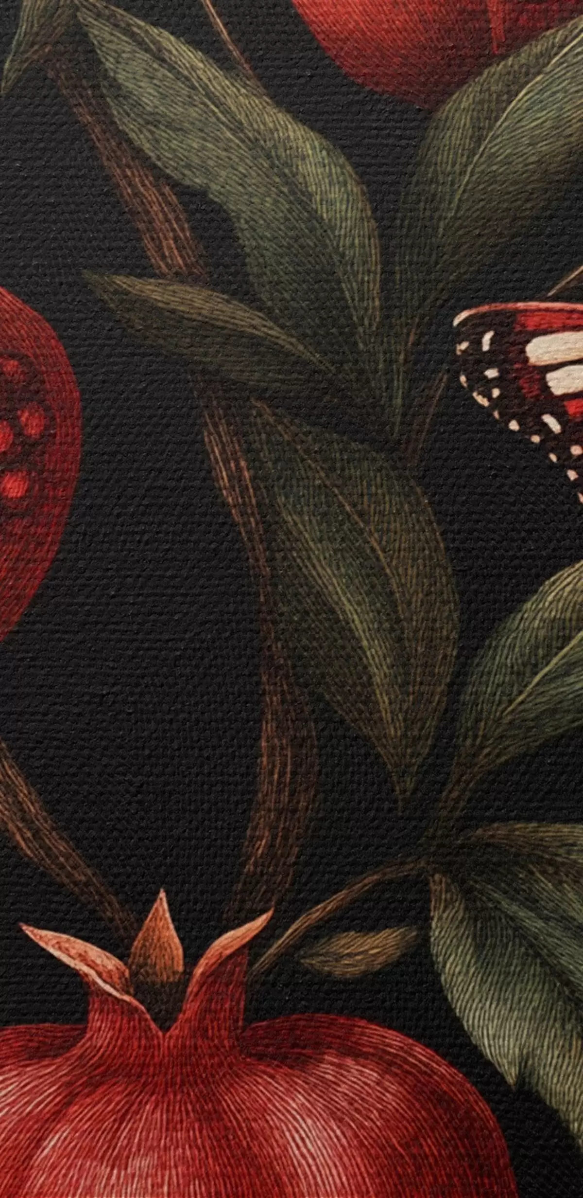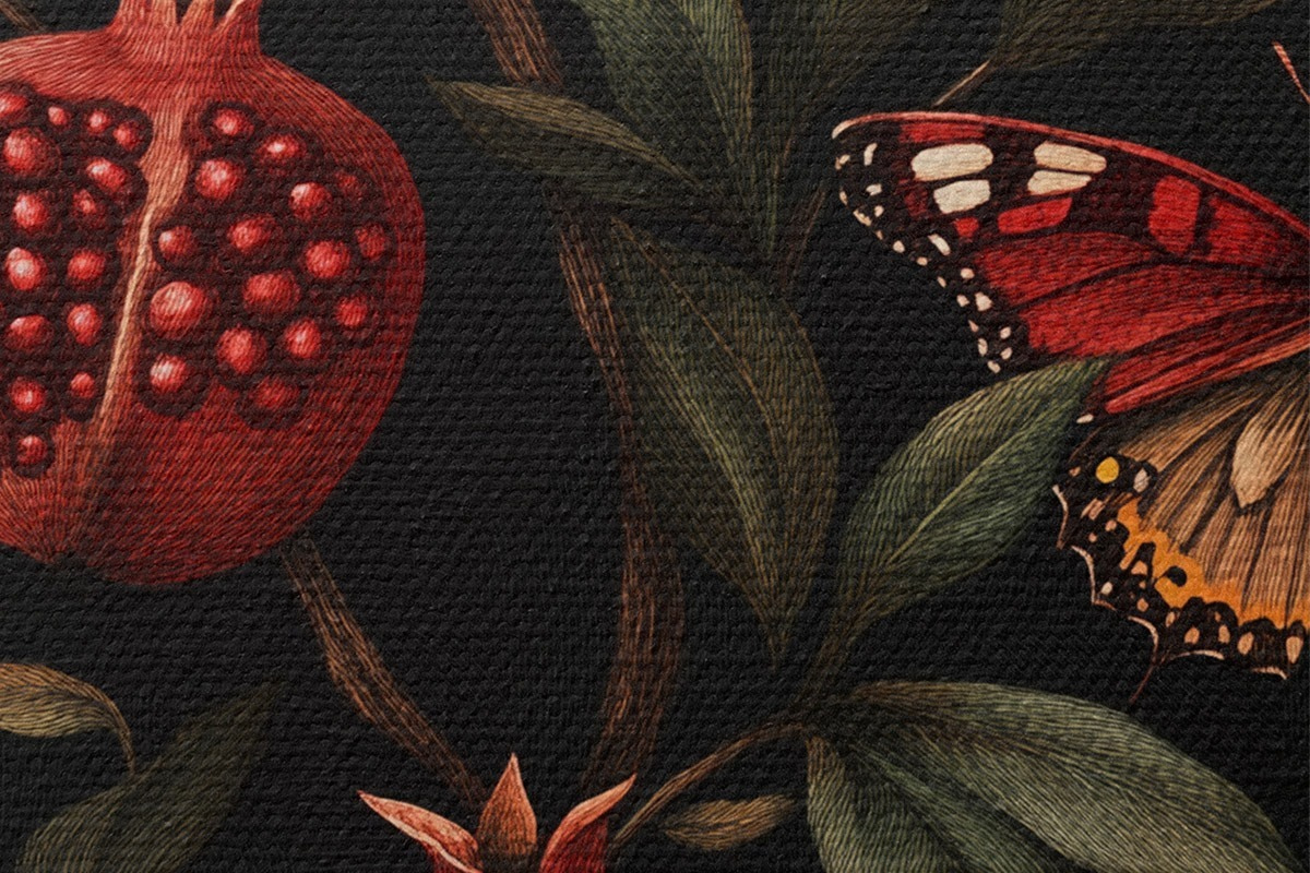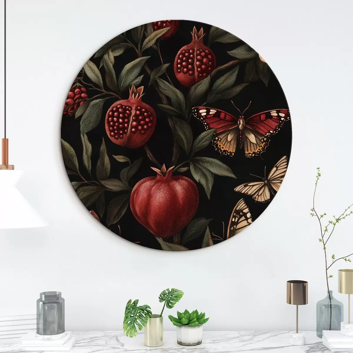 Runde Wandbilder Botanische Kunst mit Granatäpfeln und Schmetterlingen Nr r44511