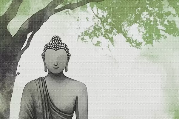 Runde Wandbilder Buddha sitzt unter dem Baum, Meditation, spirituell, grüne Farben Nr r44512v1