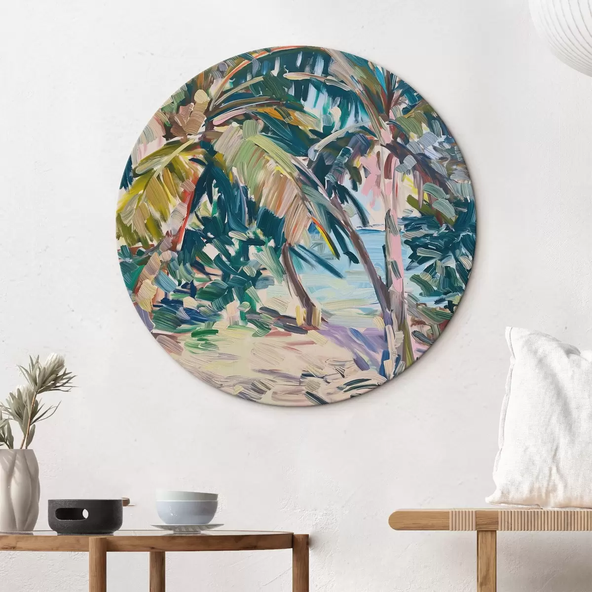 Runde Wandbilder Palmen Abstraktion, Nachahmung von Pinselstrichen Nr r44513