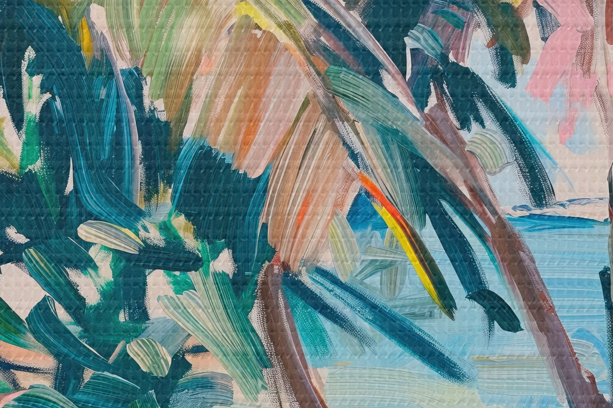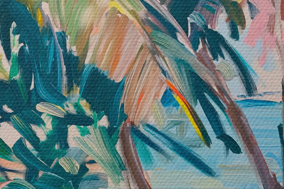 Runde Wandbilder Palmen Abstraktion, Nachahmung von Pinselstrichen r44513