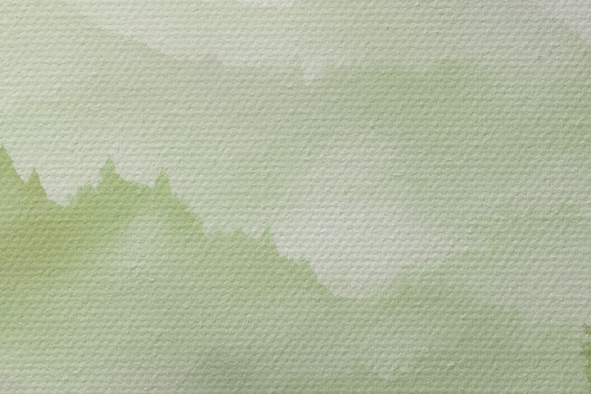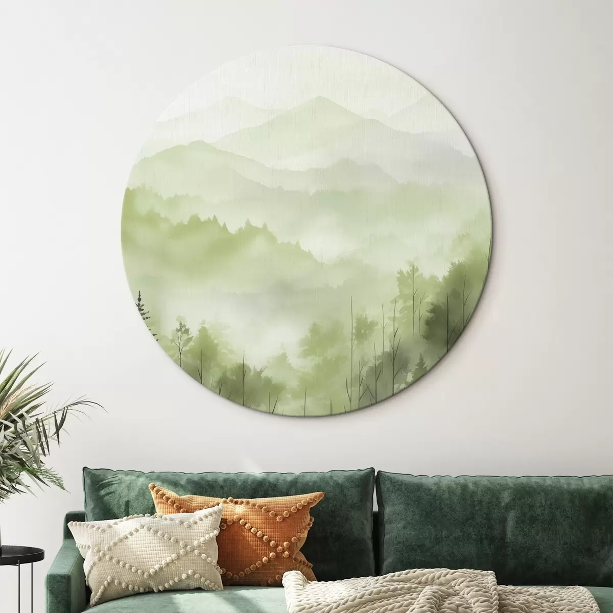 Runde Wandbilder Berge mit Waldlandschaft, grüne Farben, Aquarellstil r44606