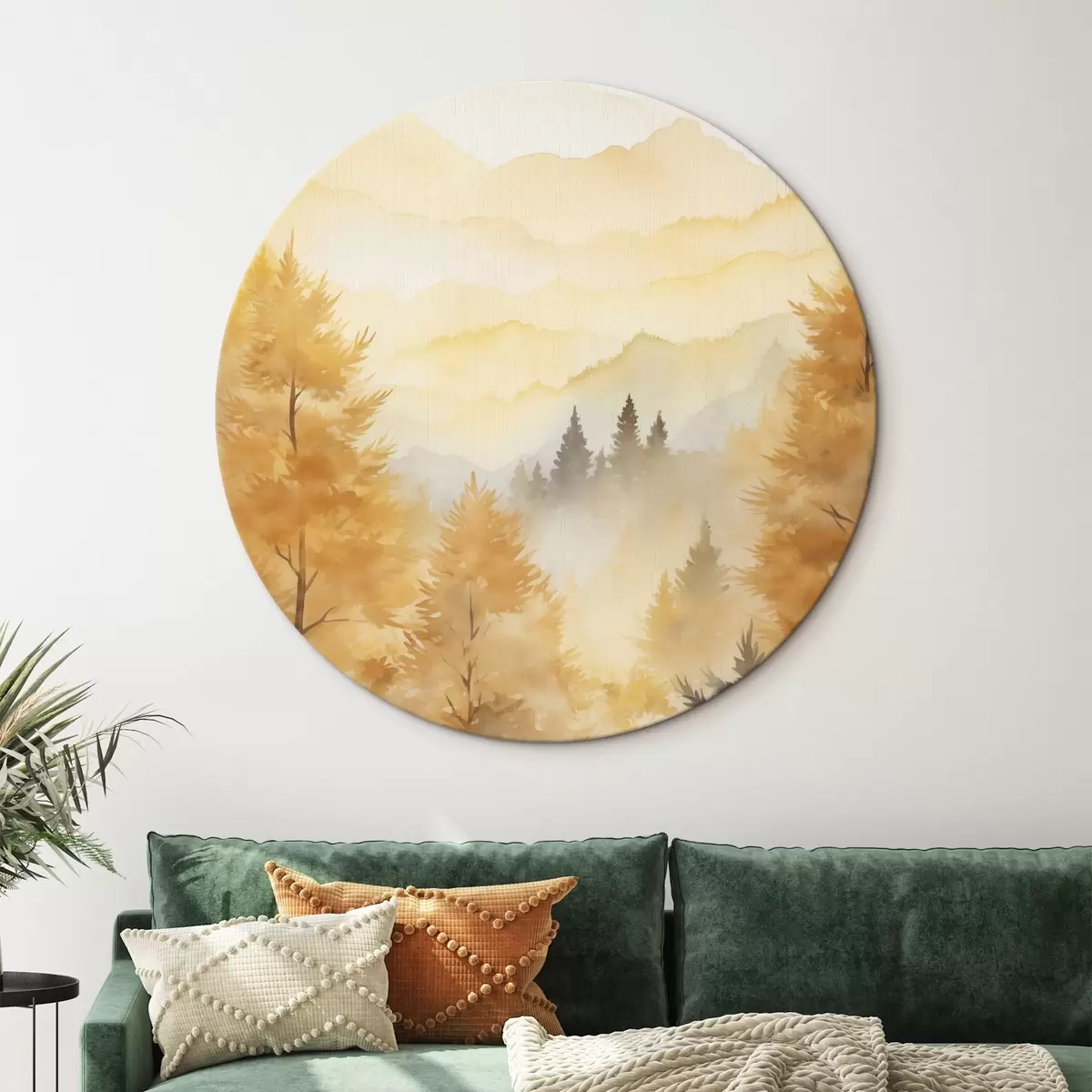 Runde Wandbilder Schöner Herbstwald mit Bergen im Hintergrund Nr r44614