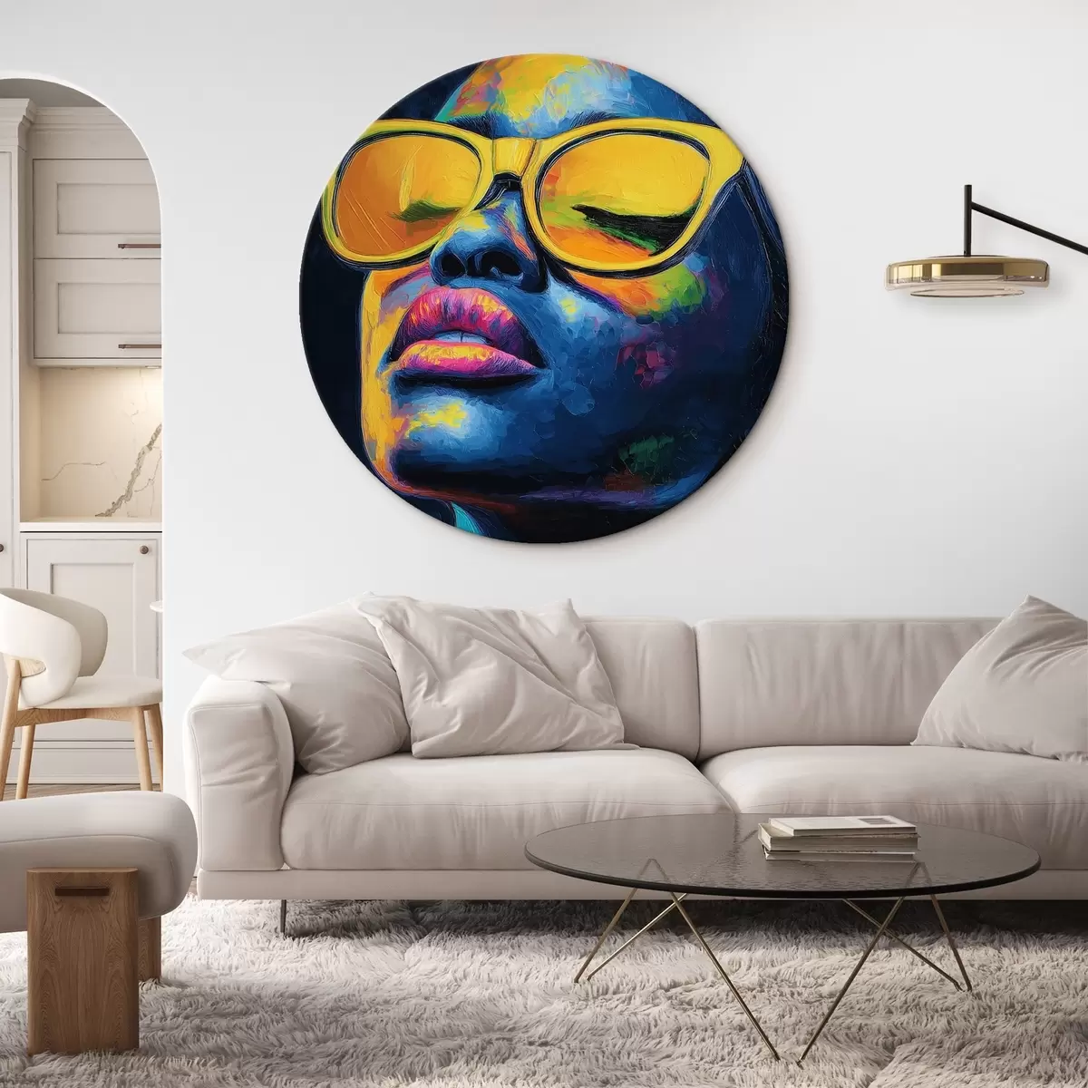 Runde Wandbilder Mädchen mit gelber Brille r44621