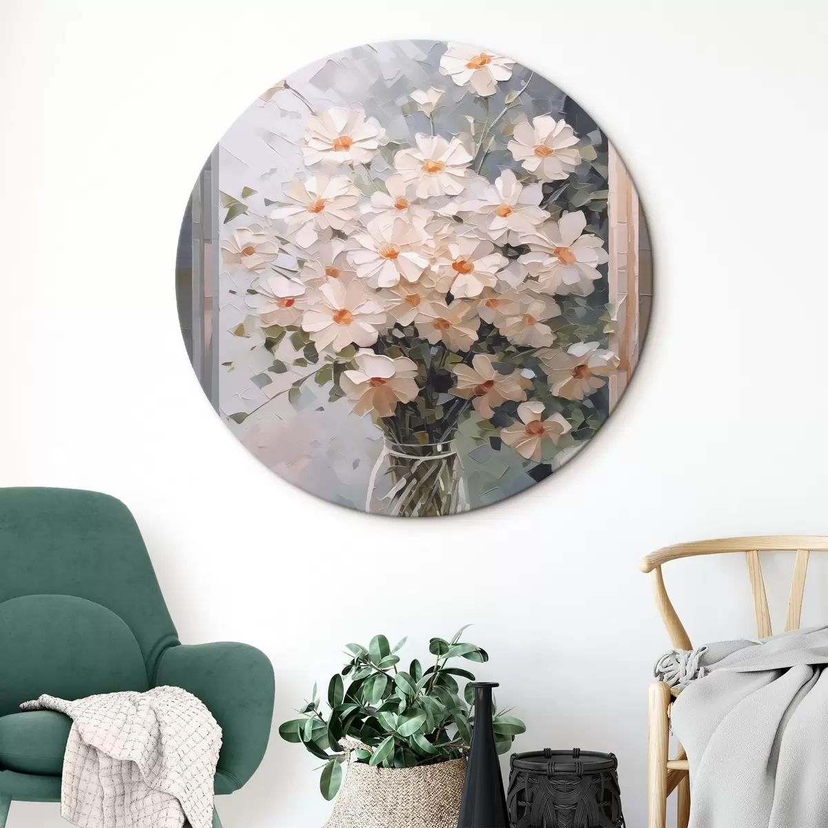 Runde Wandbilder Zarte Blumen in einer Vase r44651
