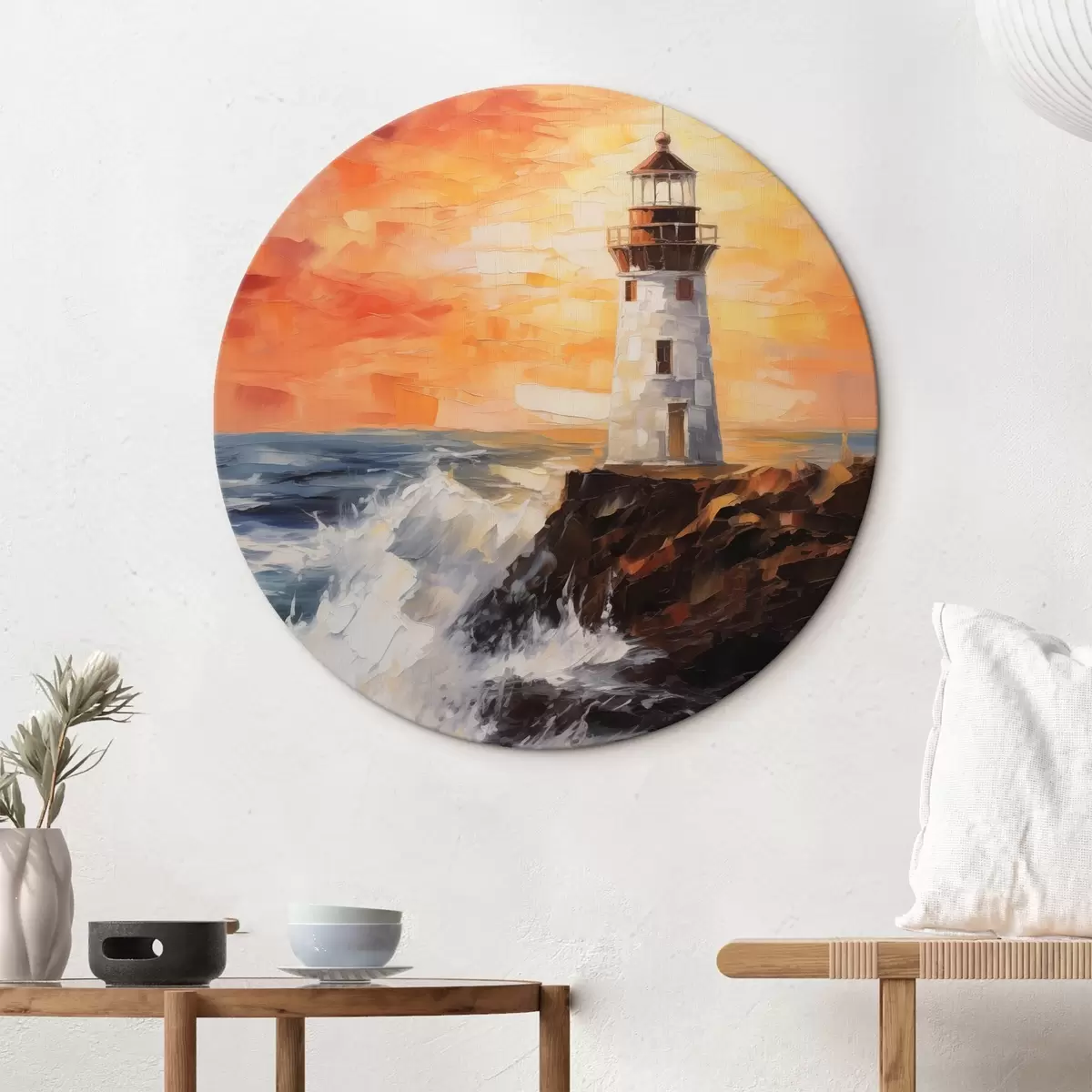 Runde Wandbilder Leuchtturm bei Sonnenuntergang Nr r44674