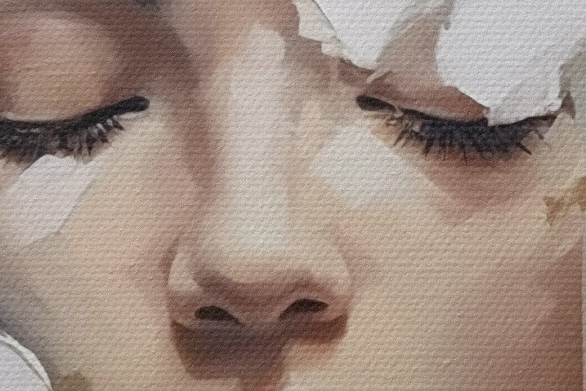 Um die Leinwand auf Keilrahmen zu spannen, ohne das Bild zu beschädigen, verwenden wir ein gespiegeltes Bild.