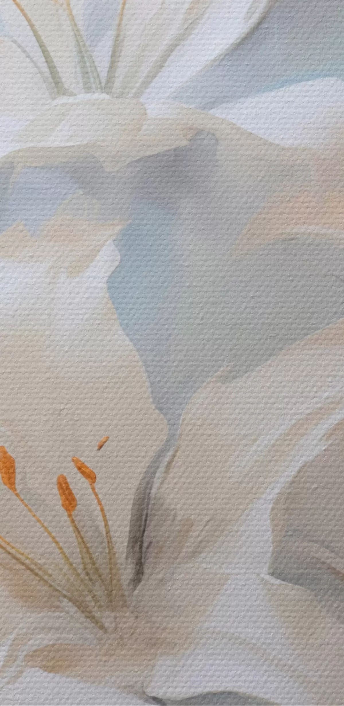 Drei Materialtypen stehen zur Verfügung: Economic Canvas - ein dichtes und haltbares Material für den Digitaldruck, identisch mit Malerleinwand, wasserfeste Oberfläche, realistische Wiedergabe von Details, mittelkörniges Material. Premium Canvas - die Textur ähnelt der einer Malerleinwand (verwobene kleine Fäden). Weiche, detaillierte Wiedergabe des Bildes auf einer matten Oberfläche. Eco-Premium - hochwertiges Gewebe aus 100% Baumwolle. Dank der natürlichen Baumwollfasern ist das Material langlebig und verschleißfest. Hervorragende Farbwiedergabe und Detailtreue.