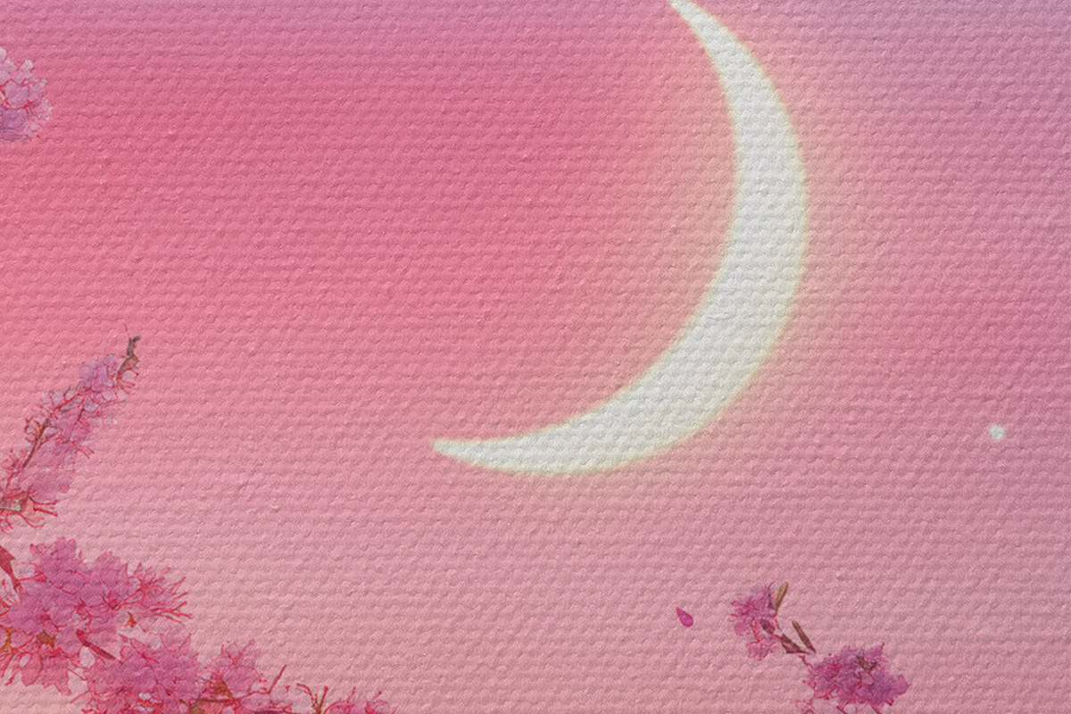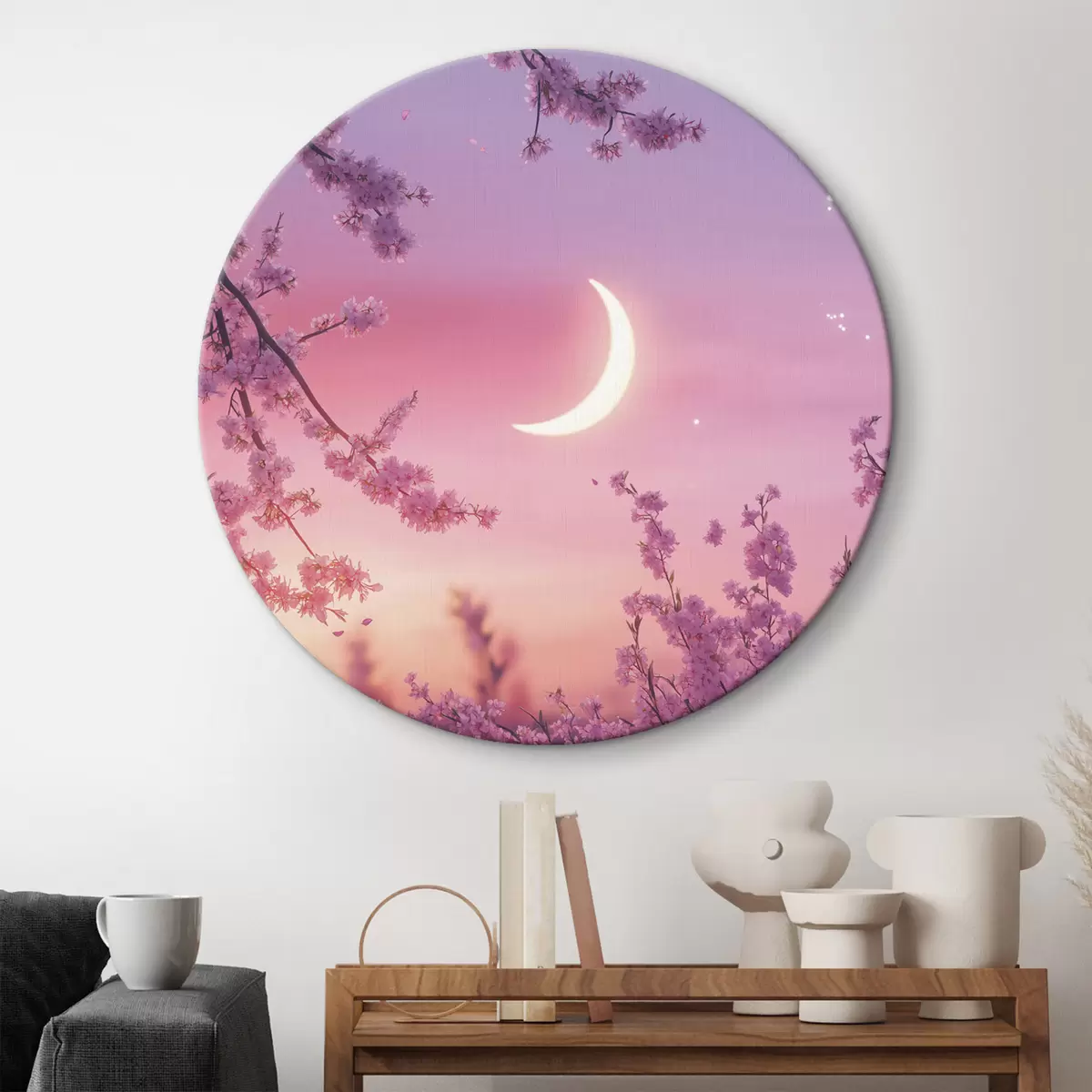 Runde Wandbilder Kirschblüte, rosa Himmel mit leuchtendem Mond, Realismus r44715