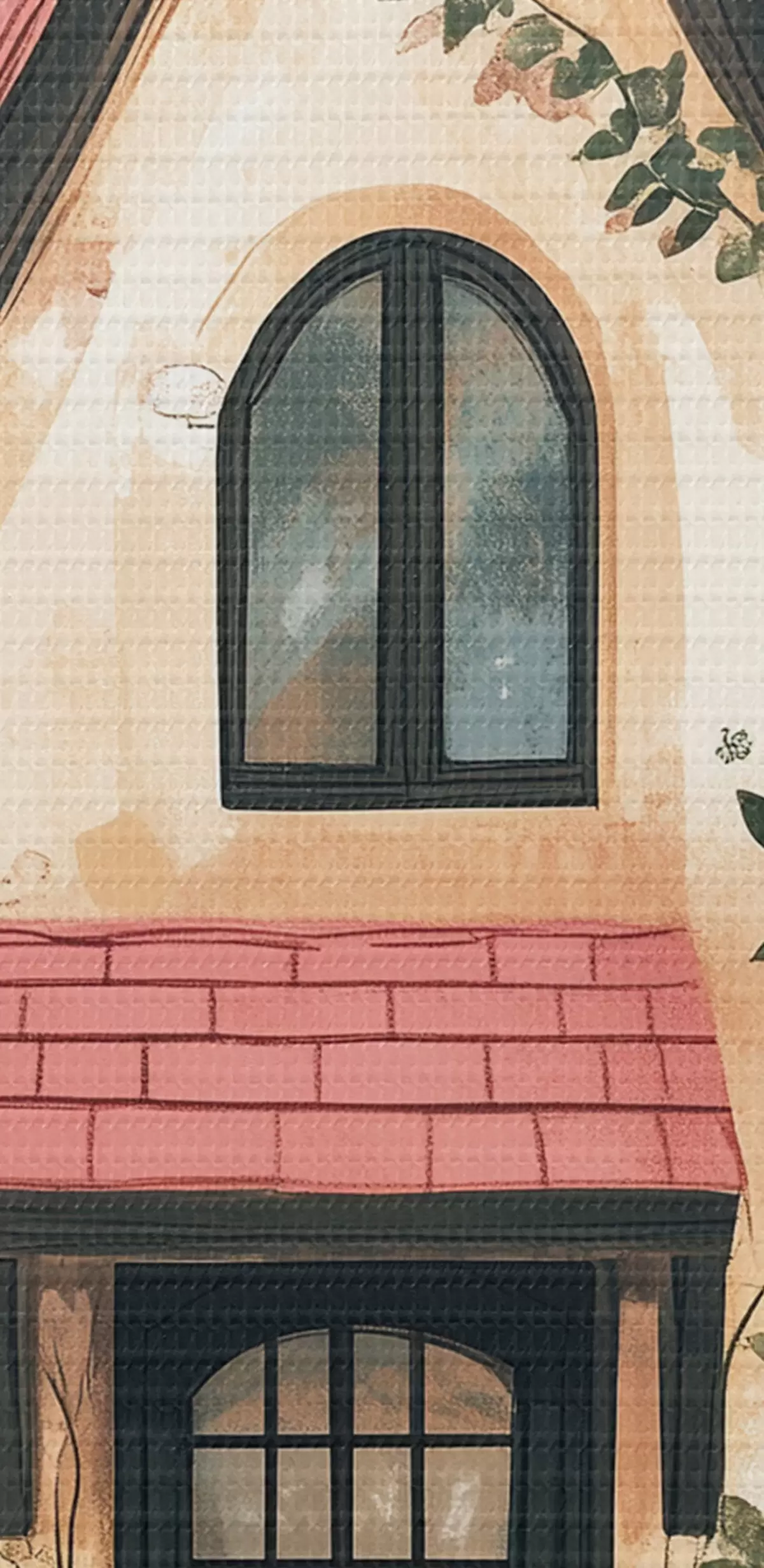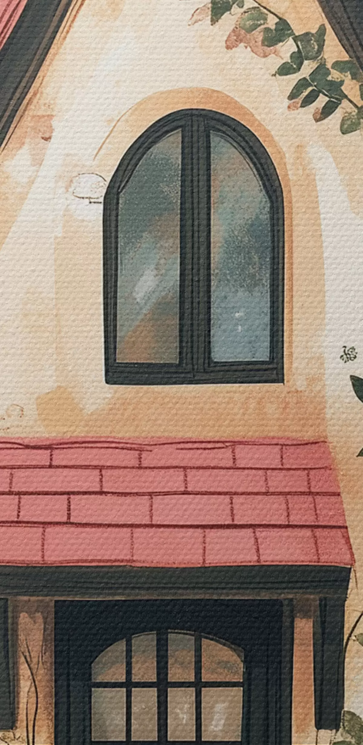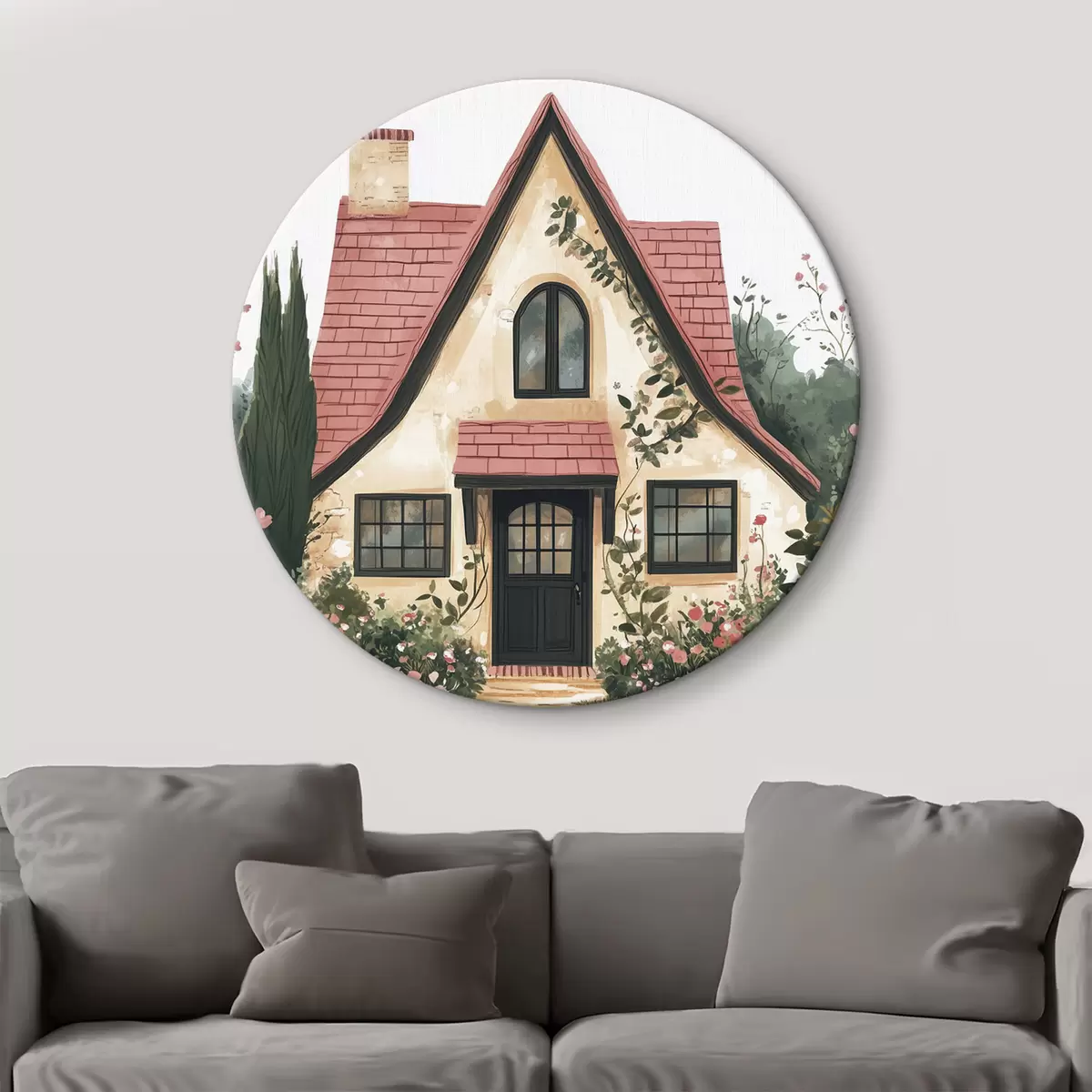 Runde Wandbilder Ein märchenhaftes Haus im Wald, Rosen, Pastellfarben r44718