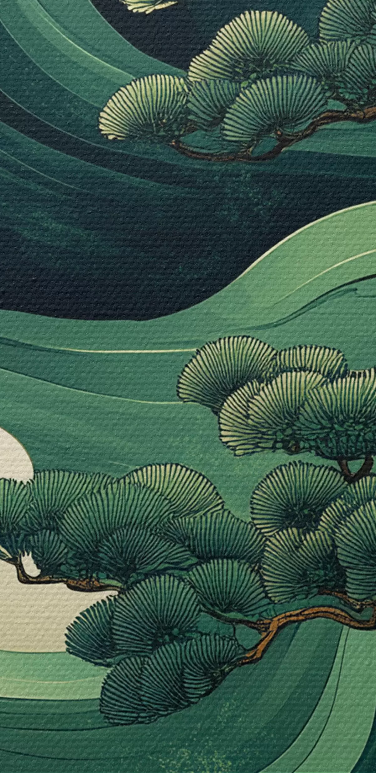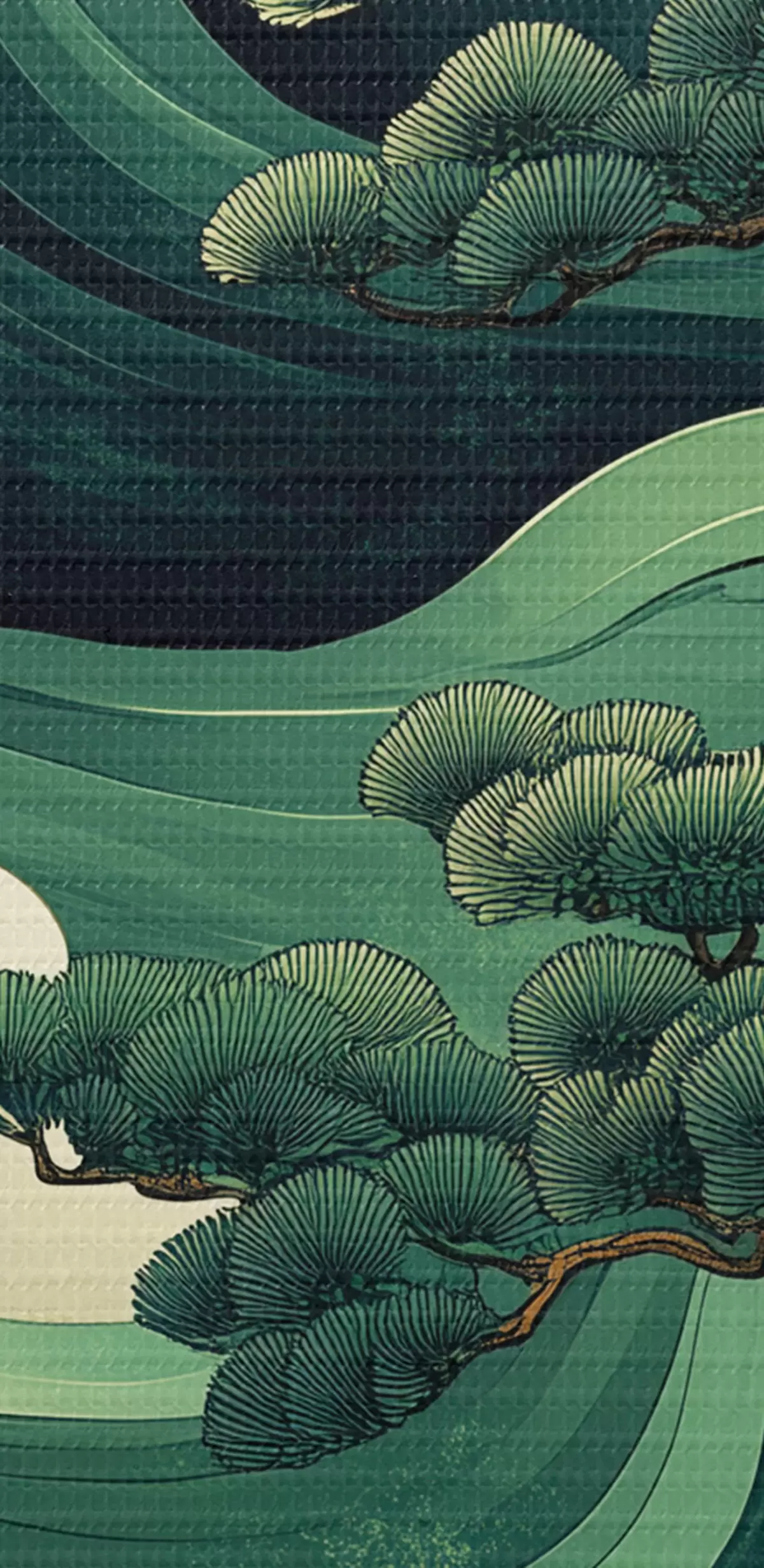 Runde Wandbilder Zeichnung im chinesischen Stil mit Meereswellen und Pinienbäumen r44719