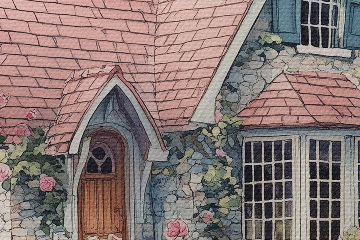 Runde Wandbilder Schönes Haus in der Birke, Rosengarten r44721