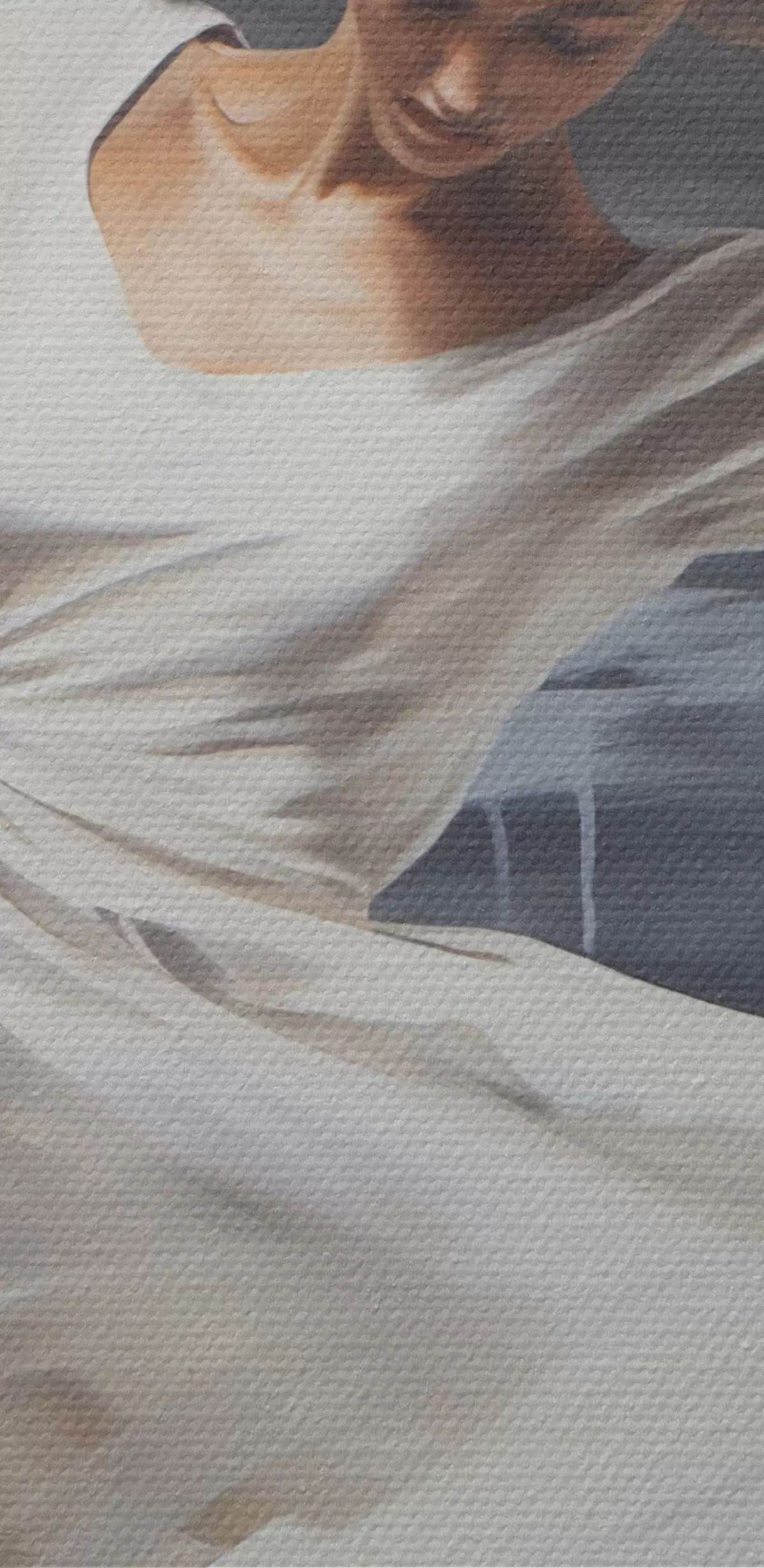 Drei Materialtypen stehen zur Verfügung: Economic Canvas - ein dichtes und haltbares Material für den Digitaldruck, identisch mit Malerleinwand, wasserfeste Oberfläche, realistische Wiedergabe von Details, mittelkörniges Material. Premium Canvas - die Textur ähnelt der einer Malerleinwand (verwobene kleine Fäden). Weiche, detaillierte Wiedergabe des Bildes auf einer matten Oberfläche. Eco-Premium - hochwertiges Gewebe aus 100% Baumwolle. Dank der natürlichen Baumwollfasern ist das Material langlebig und verschleißfest. Hervorragende Farbwiedergabe und Detailtreue.