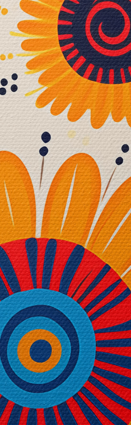 Runde Wandbilder Stilisierte Blumen in blauer und orangefarbener Palette Nr r44761