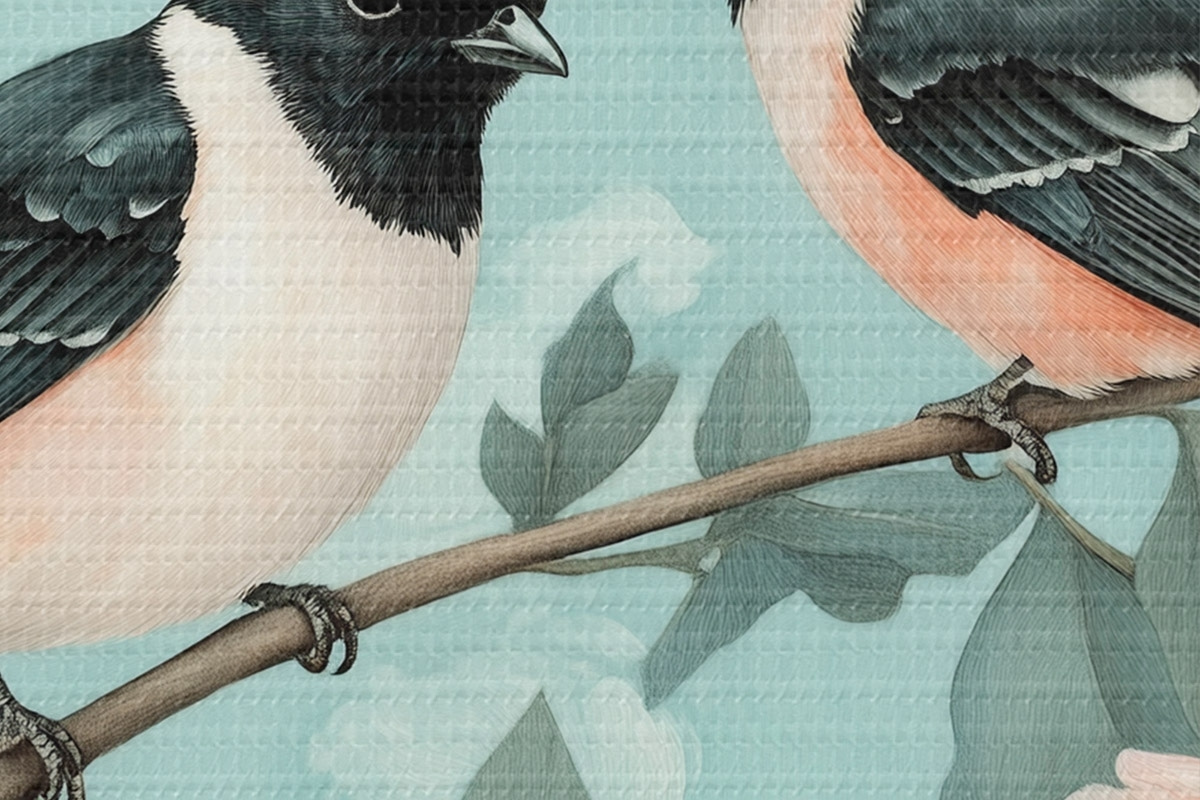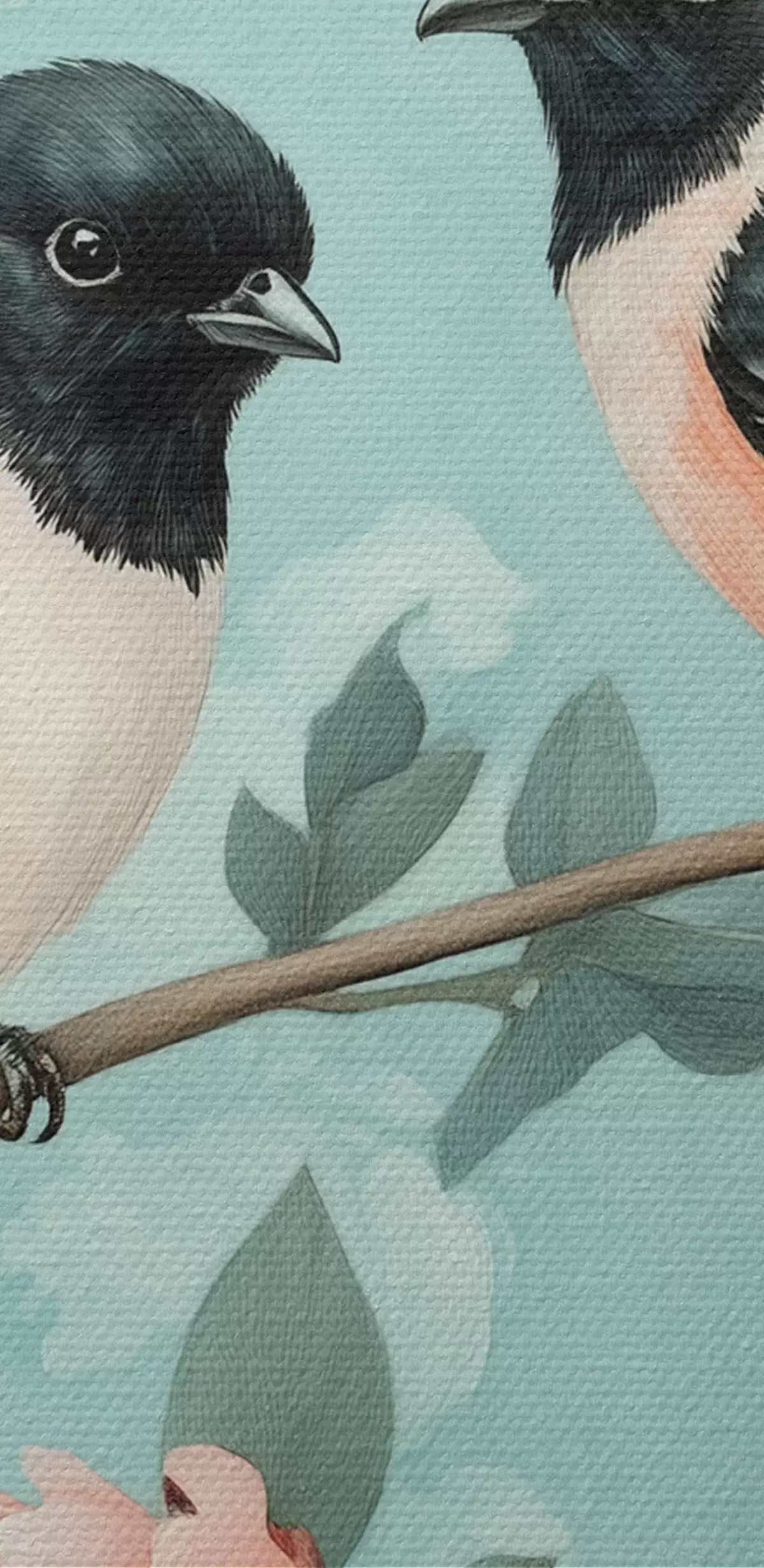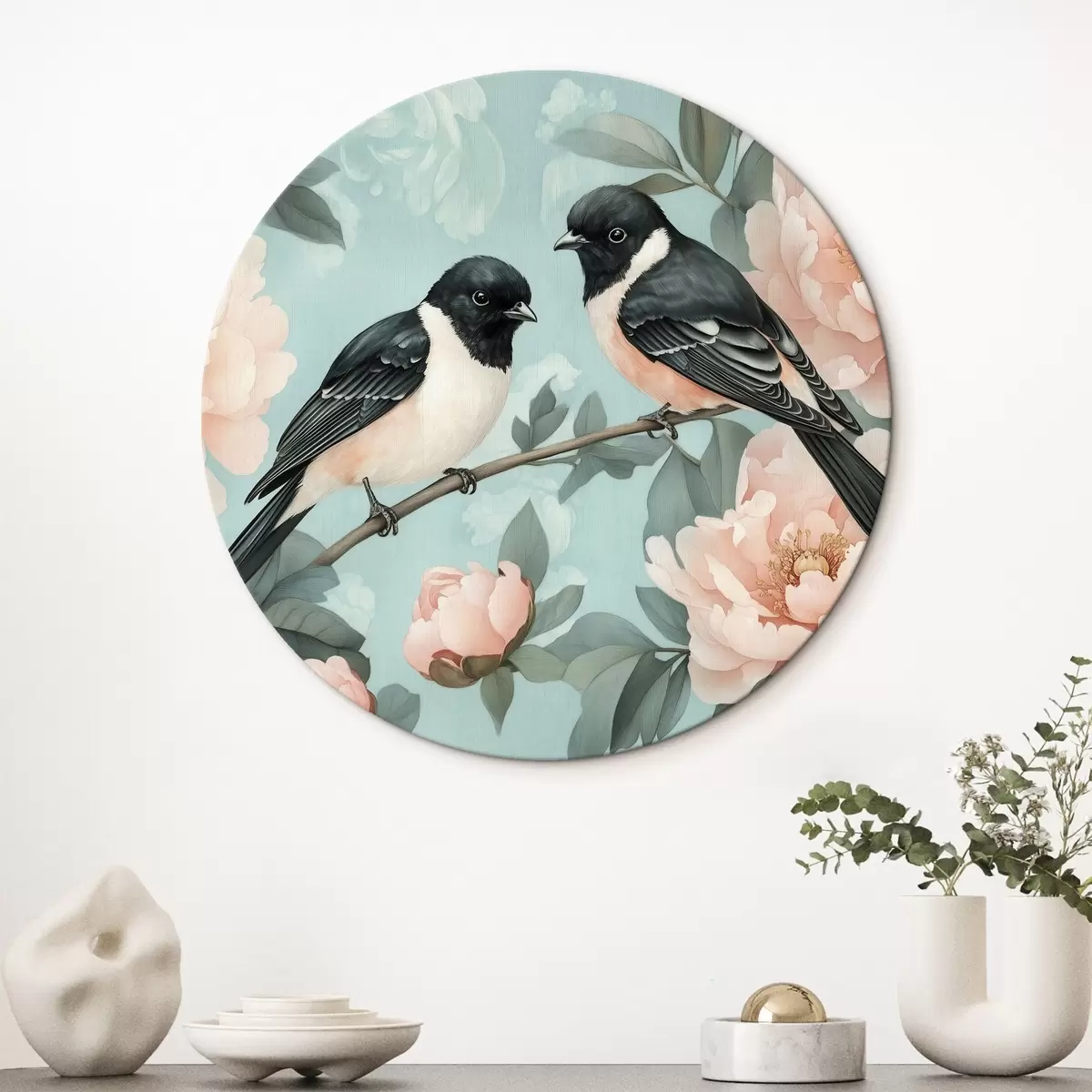 Runde Wandbilder Zwei Vögel auf dem Zweig mit Pfingstrosen Nr r44786