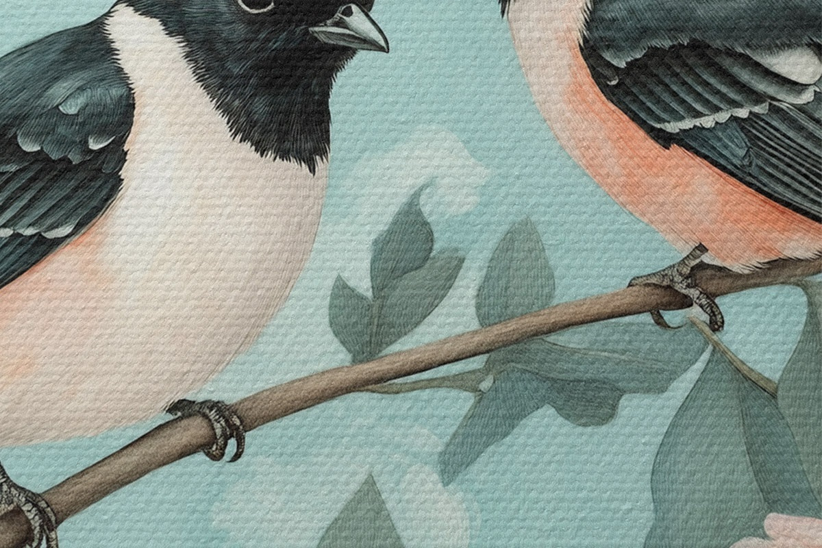 Runde Wandbilder Zwei Vögel auf dem Zweig mit Pfingstrosen r44786
