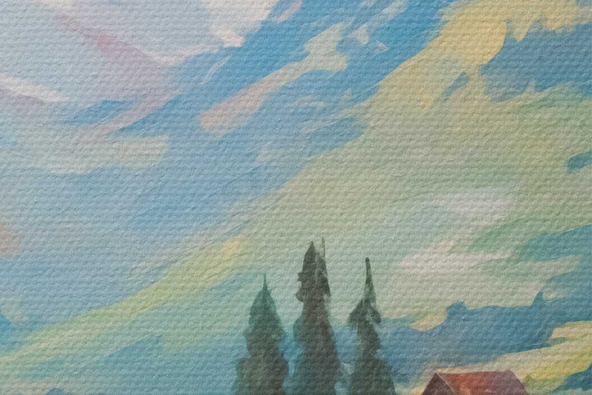 Drei Materialtypen stehen zur Verfügung: Economic Canvas - ein dichtes und haltbares Material für den Digitaldruck, identisch mit Malerleinwand, wasserfeste Oberfläche, realistische Wiedergabe von Details, mittelkörniges Material. Premium Canvas - die Textur ähnelt der einer Malerleinwand (verwobene kleine Fäden). Weiche, detaillierte Wiedergabe des Bildes auf einer matten Oberfläche. Eco-Premium - hochwertiges Gewebe aus 100% Baumwolle. Dank der natürlichen Baumwollfasern ist das Material langlebig und verschleißfest. Hervorragende Farbwiedergabe und Detailtreue.