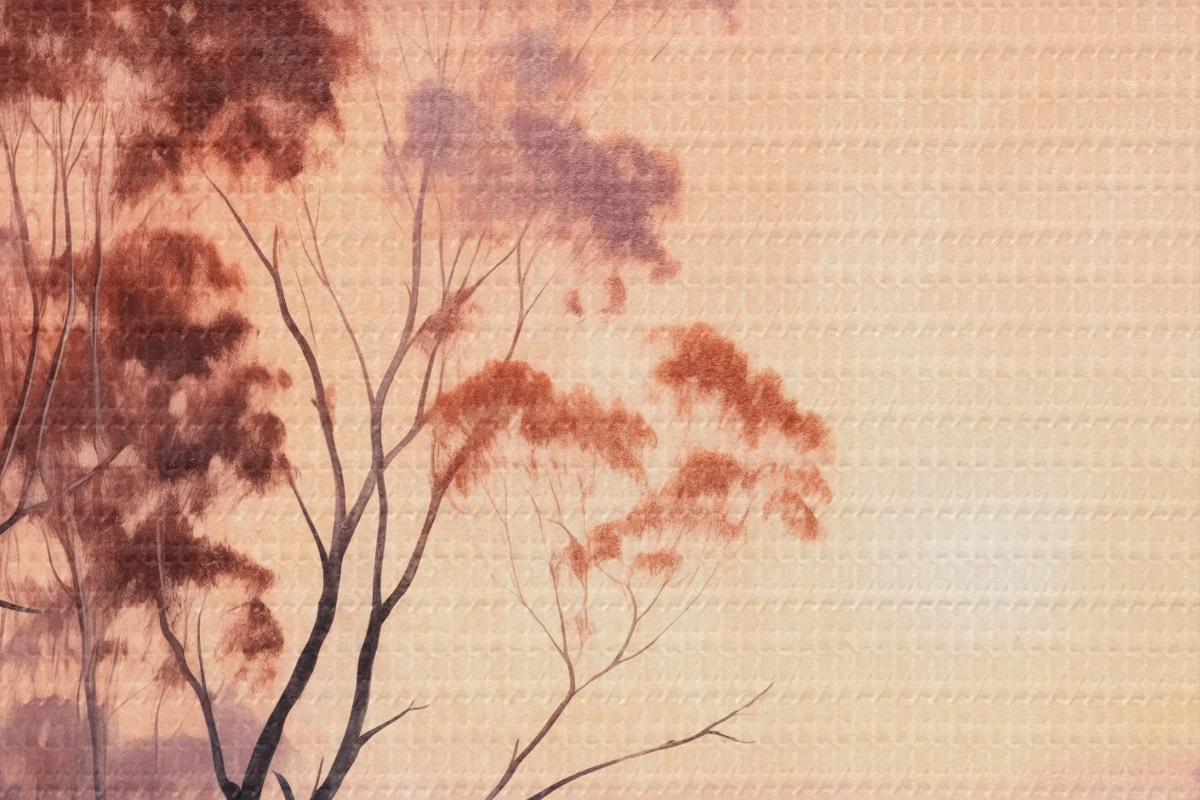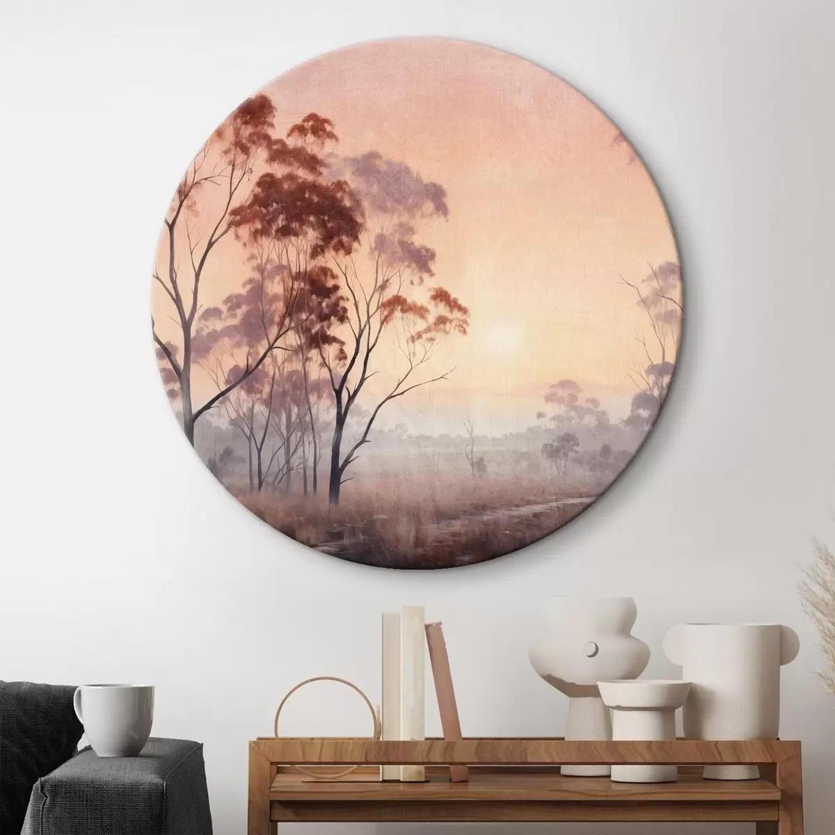 Runde Wandbilder Ein Landschaftsgemälde eines Feldes mit hohem Gras und Bäumen, die Sonne ist im Hintergrund Nr r44854