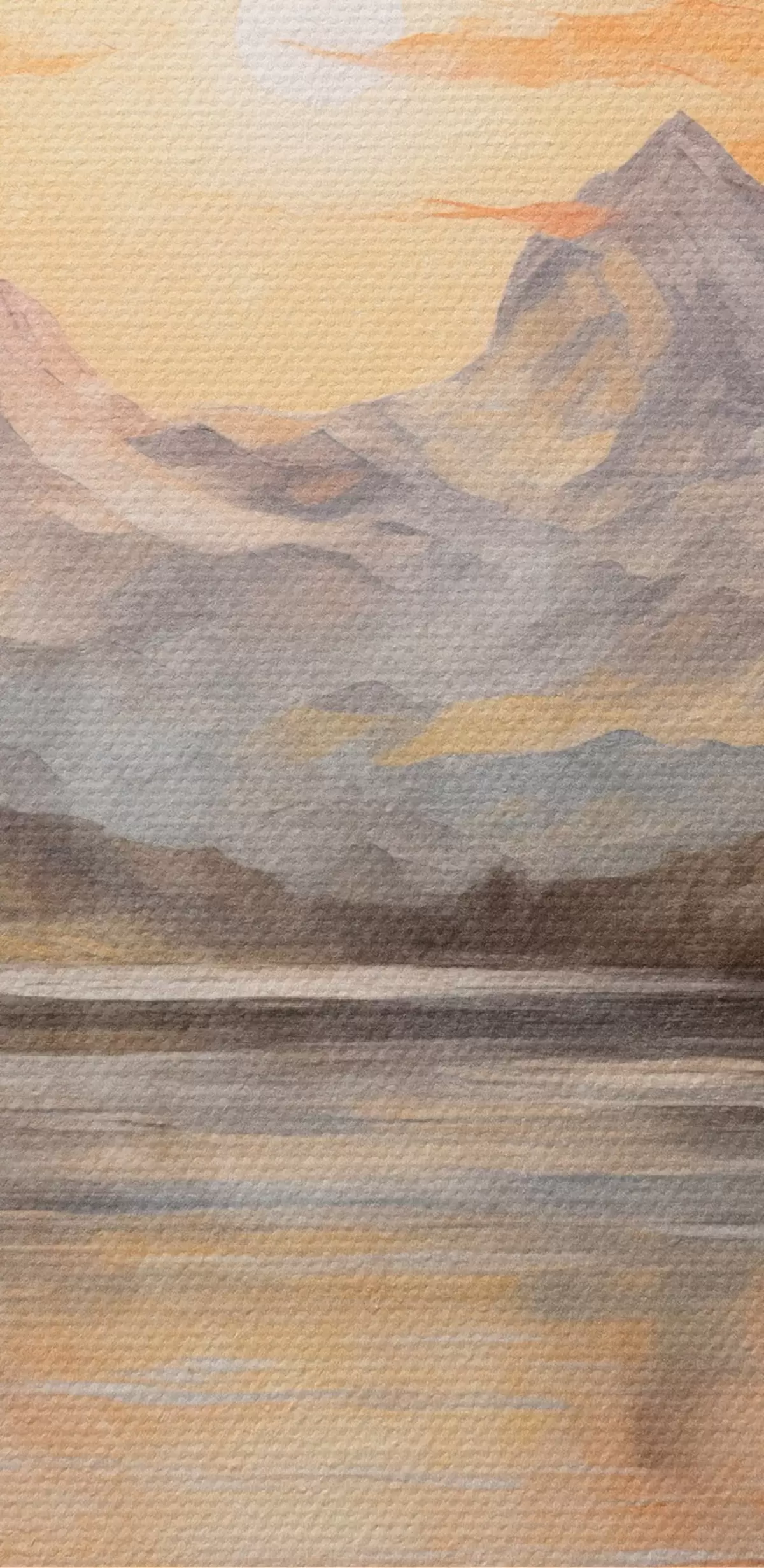 Runde Wandbilder Landschaft mit einem See, umgeben von Bäumen und Bergen im Hintergrund, orangefarbener Himmel mit Sonne r44857